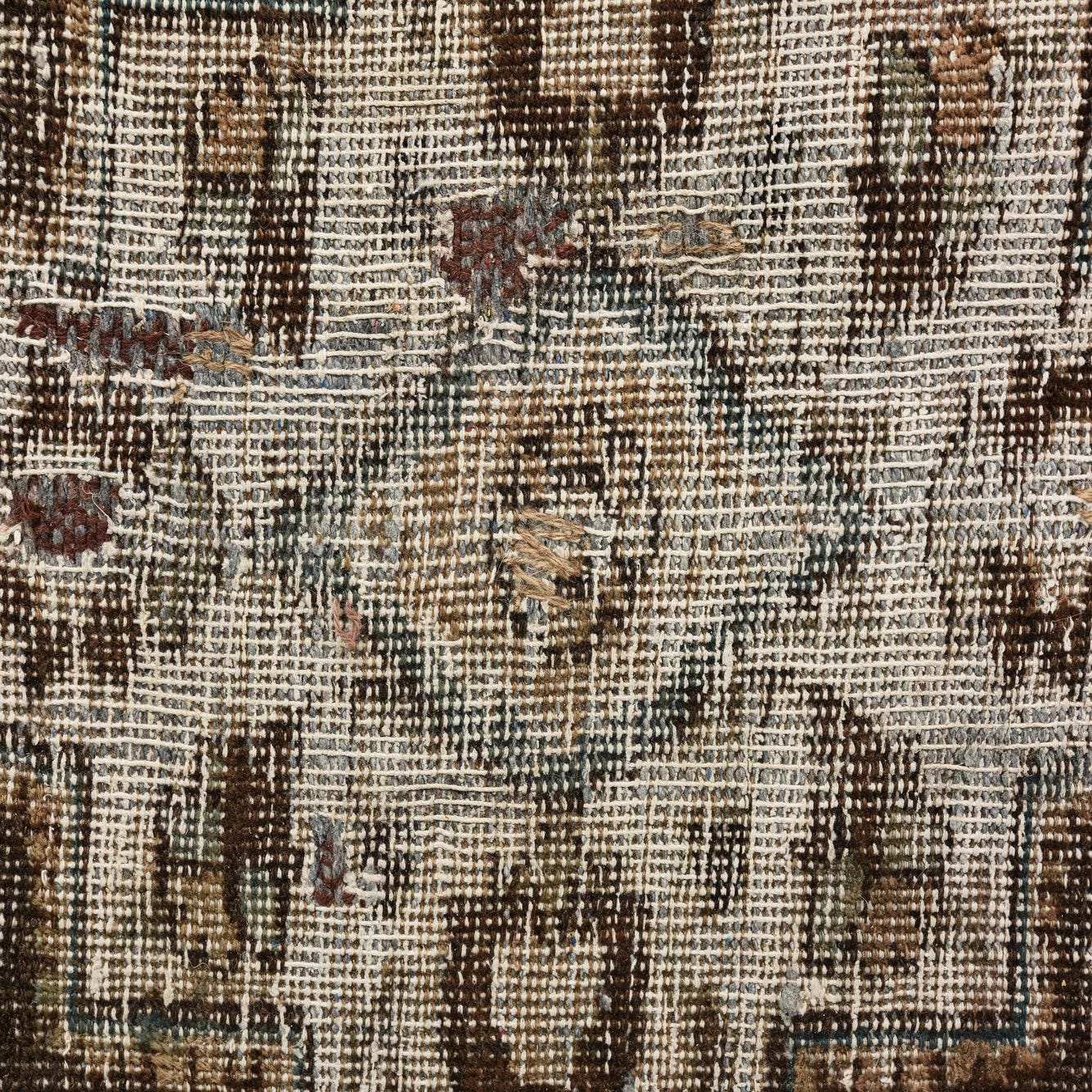 Primary color is Brown. Colors in this rug include: Brown, Beige, Ivory, Navy Blue, Green.