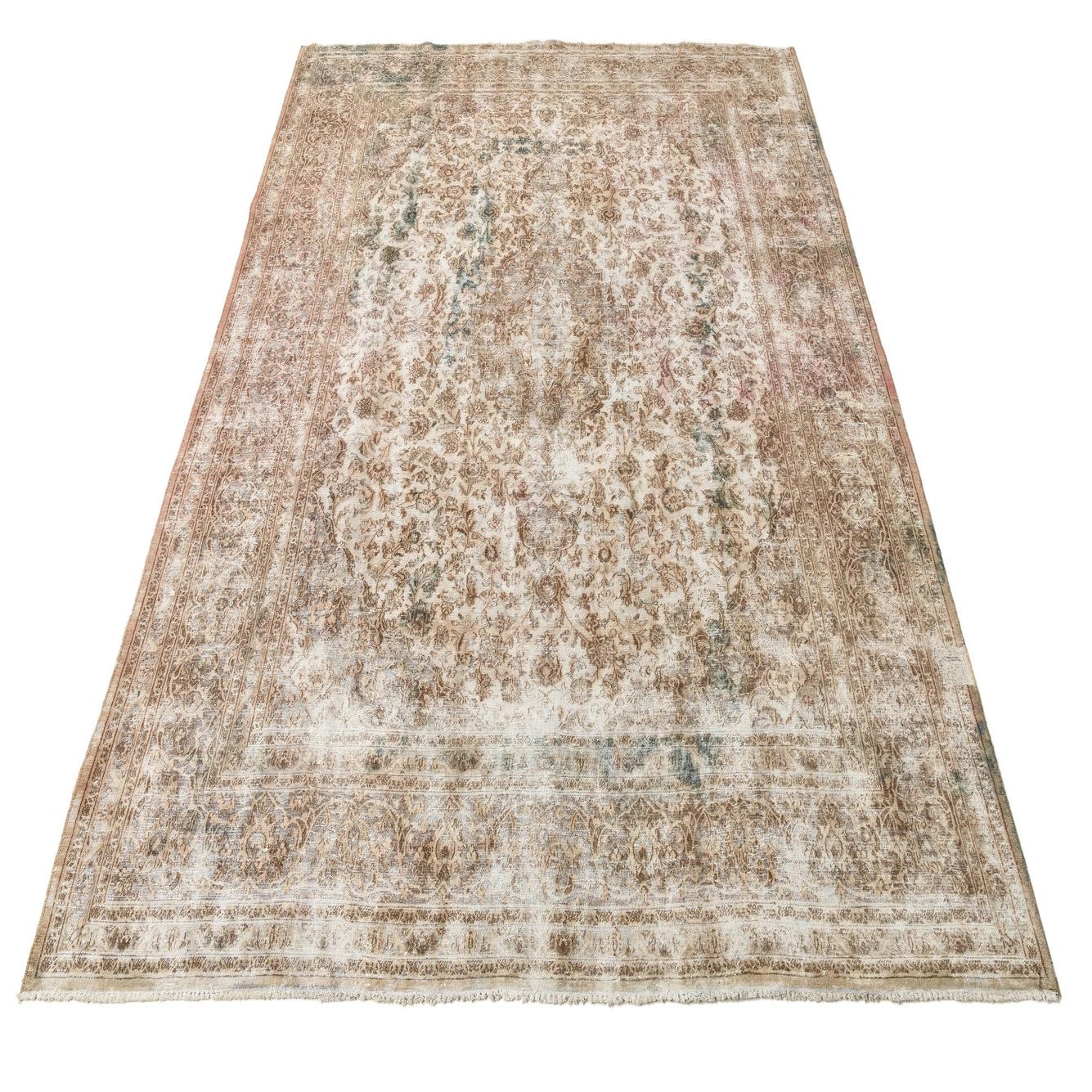 This Persian Ultra Vintage rug is an antique Persian Rug that has been washed, over-dyed, and then shaved down to a low pile. Look at the detail pictures to fully appreciate the uniqueness of this piece.
