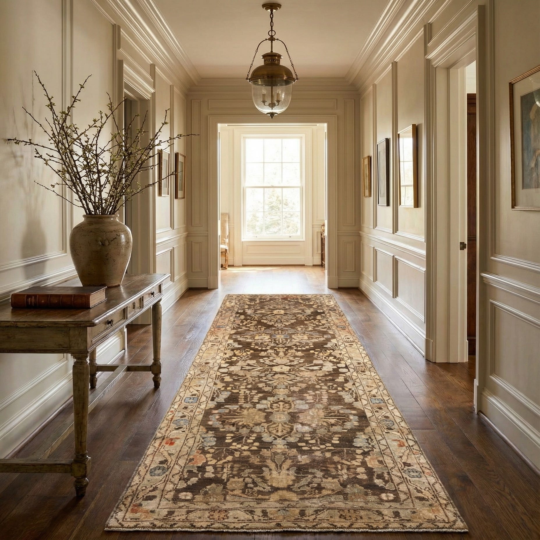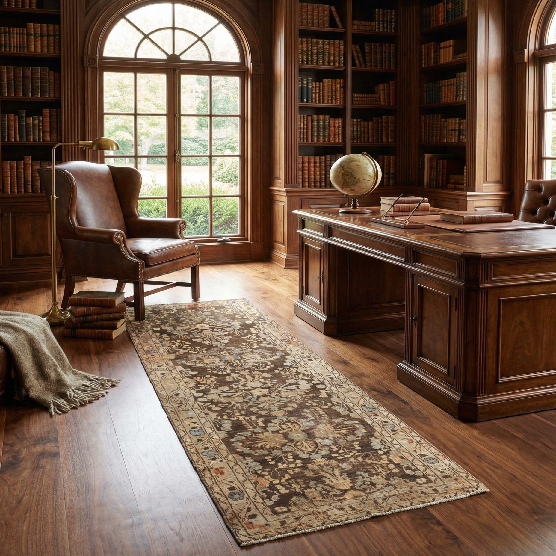Primary color is Brown. Colors in this rug include: Brown, Beige, Cream, Grey.