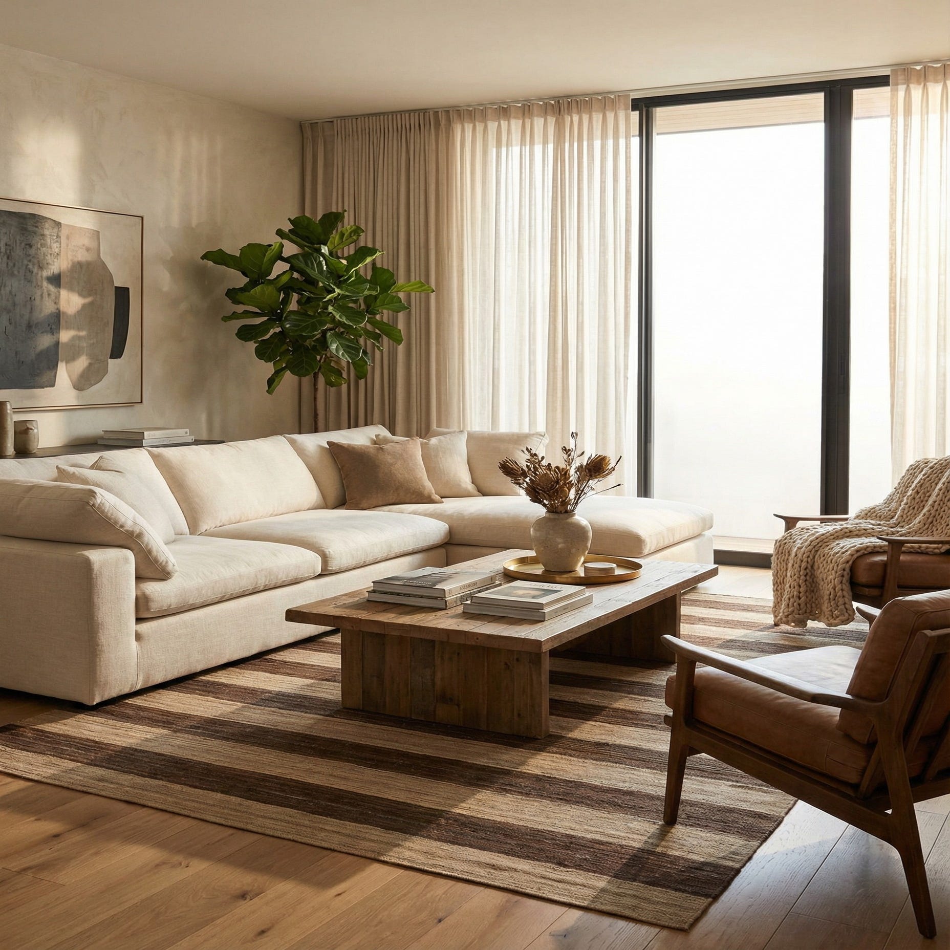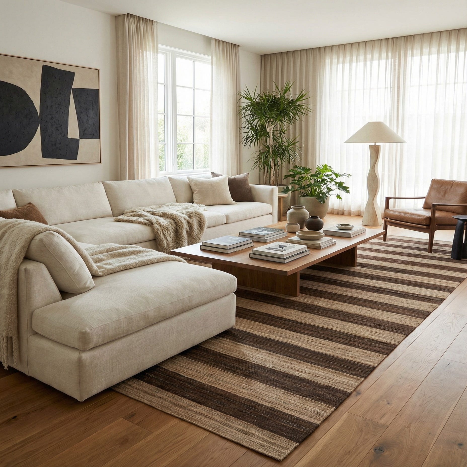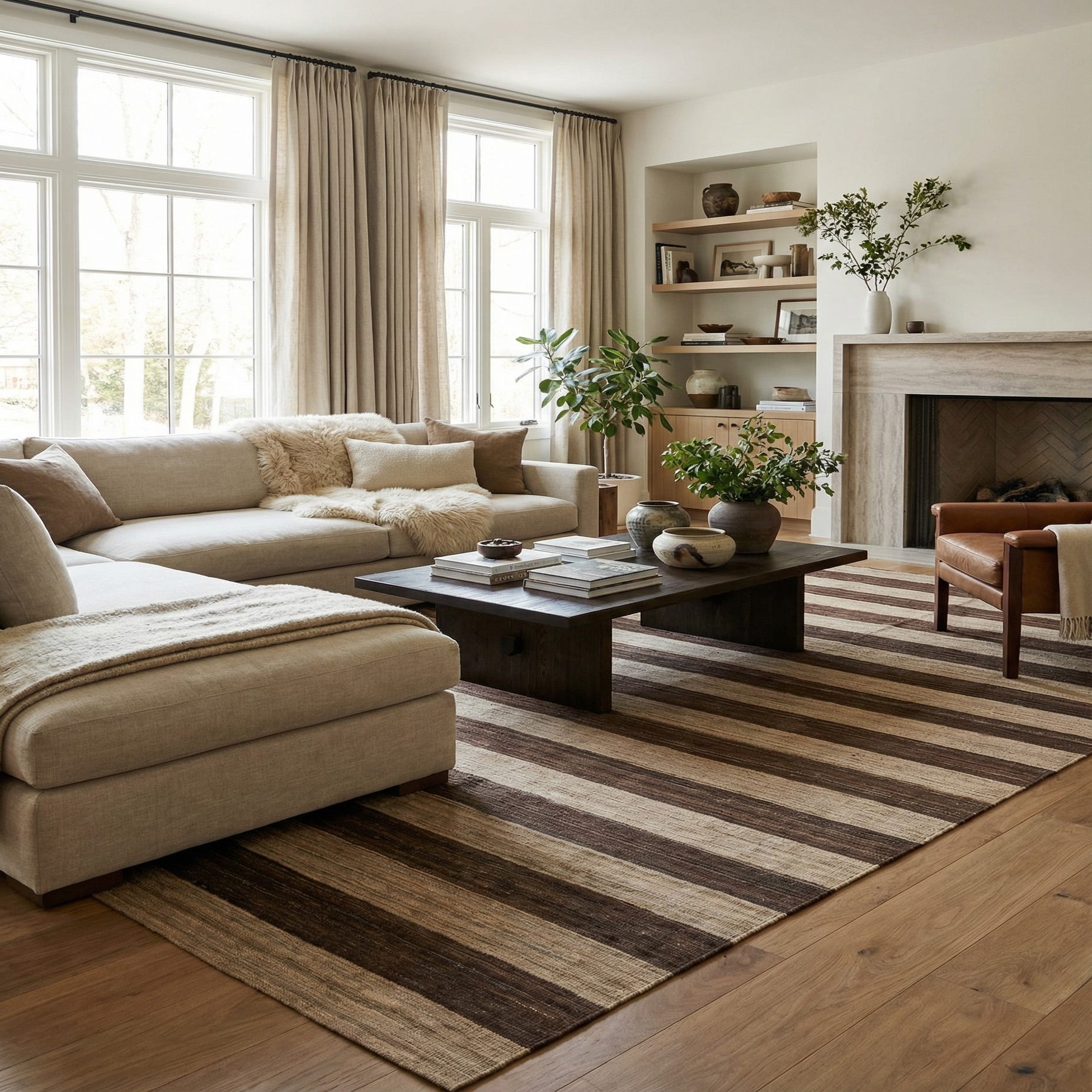 Primary color is Brown. Colors in this rug include: Brown, Beige, Light Blue, Cream.