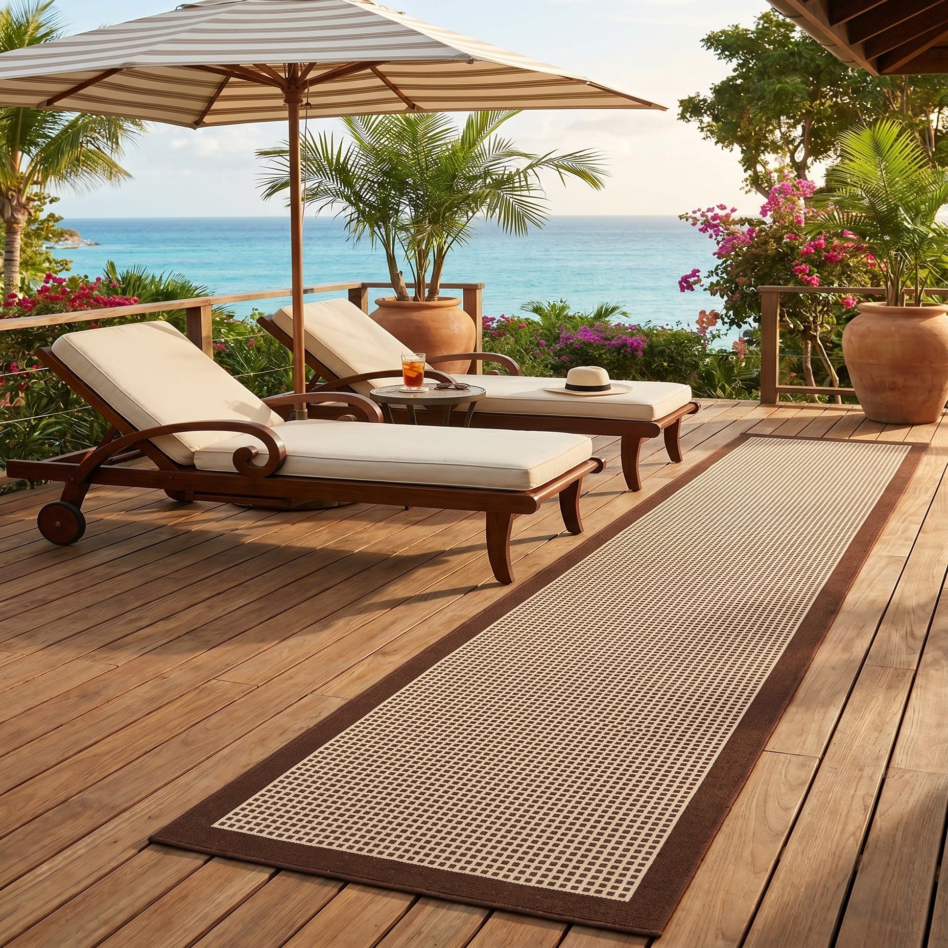 2' 7 x 12' Easy-Clean Border Indoor / Outdoor Runner Rug