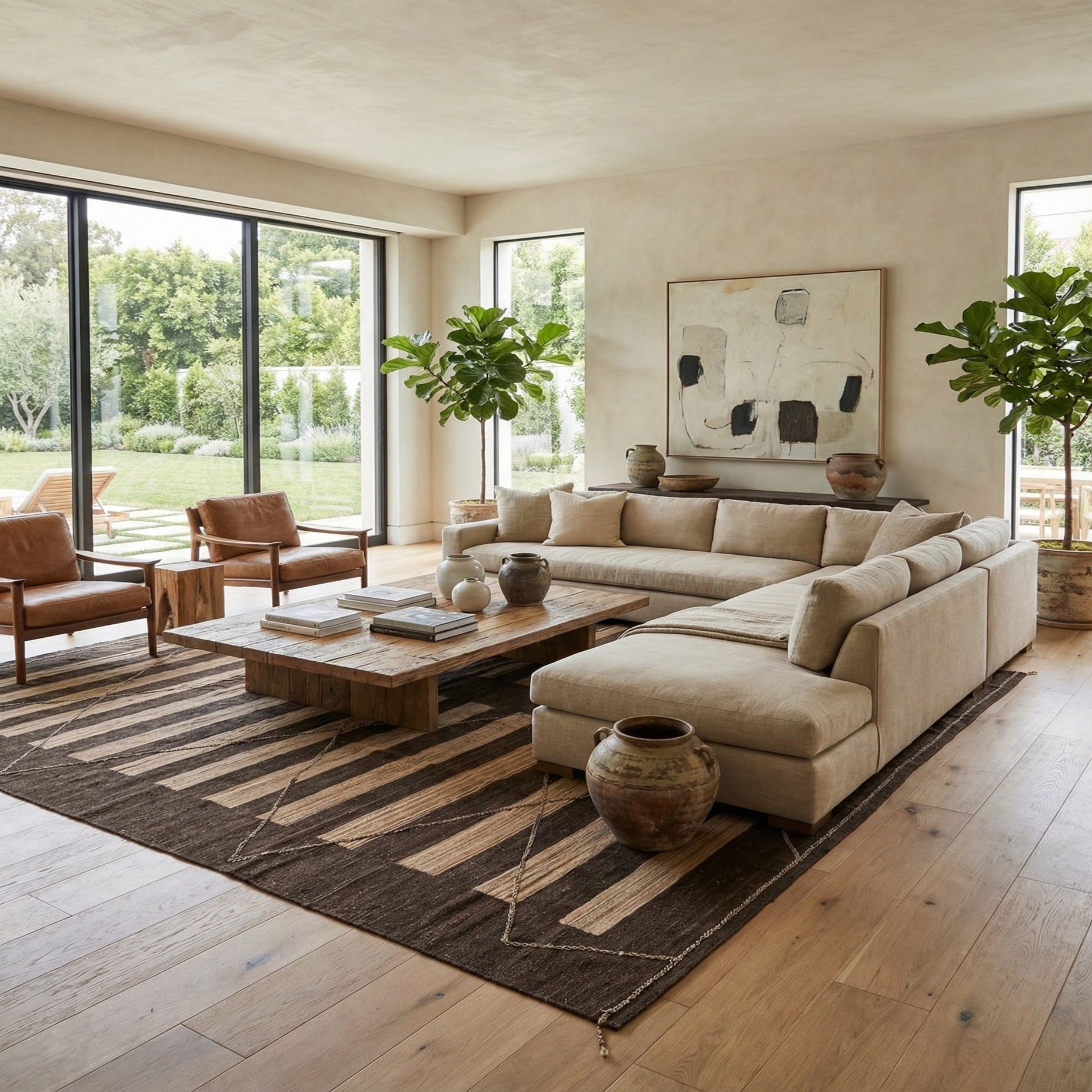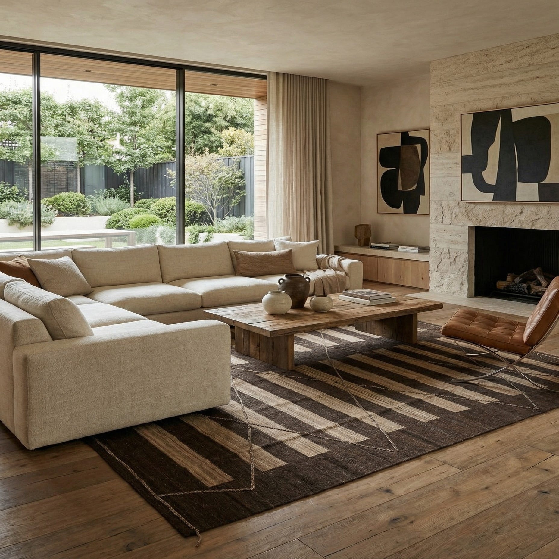 Primary color is Brown. Colors in this rug include: Brown, Beige, Light Brown.