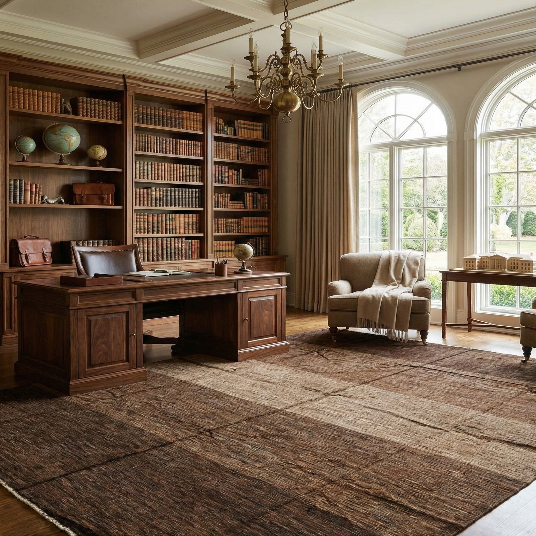 Primary color is Brown. Colors in this rug include: Brown, Beige, Light Brown, Cream.