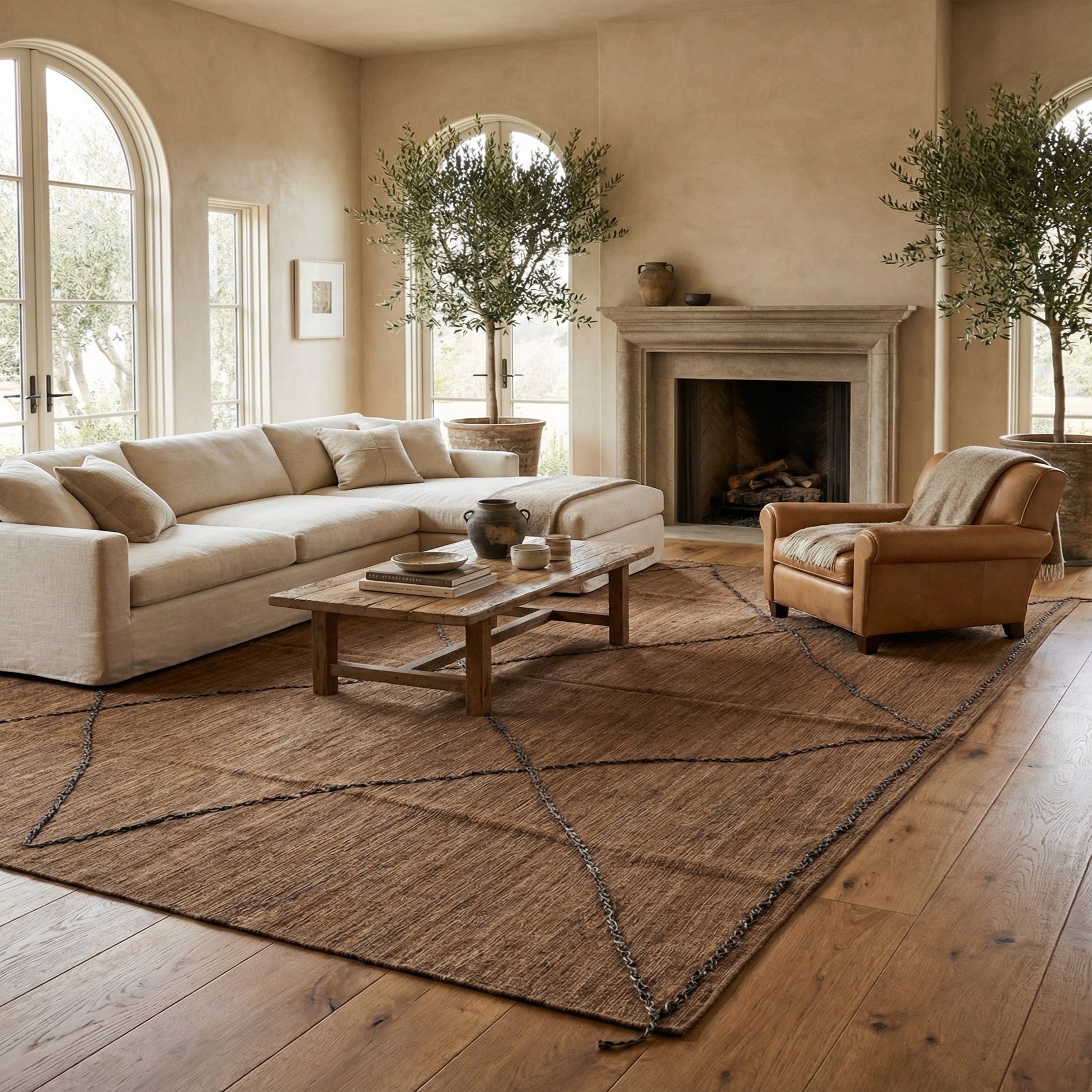 Primary color is Brown. Colors in this rug include: Brown, Light Brown.