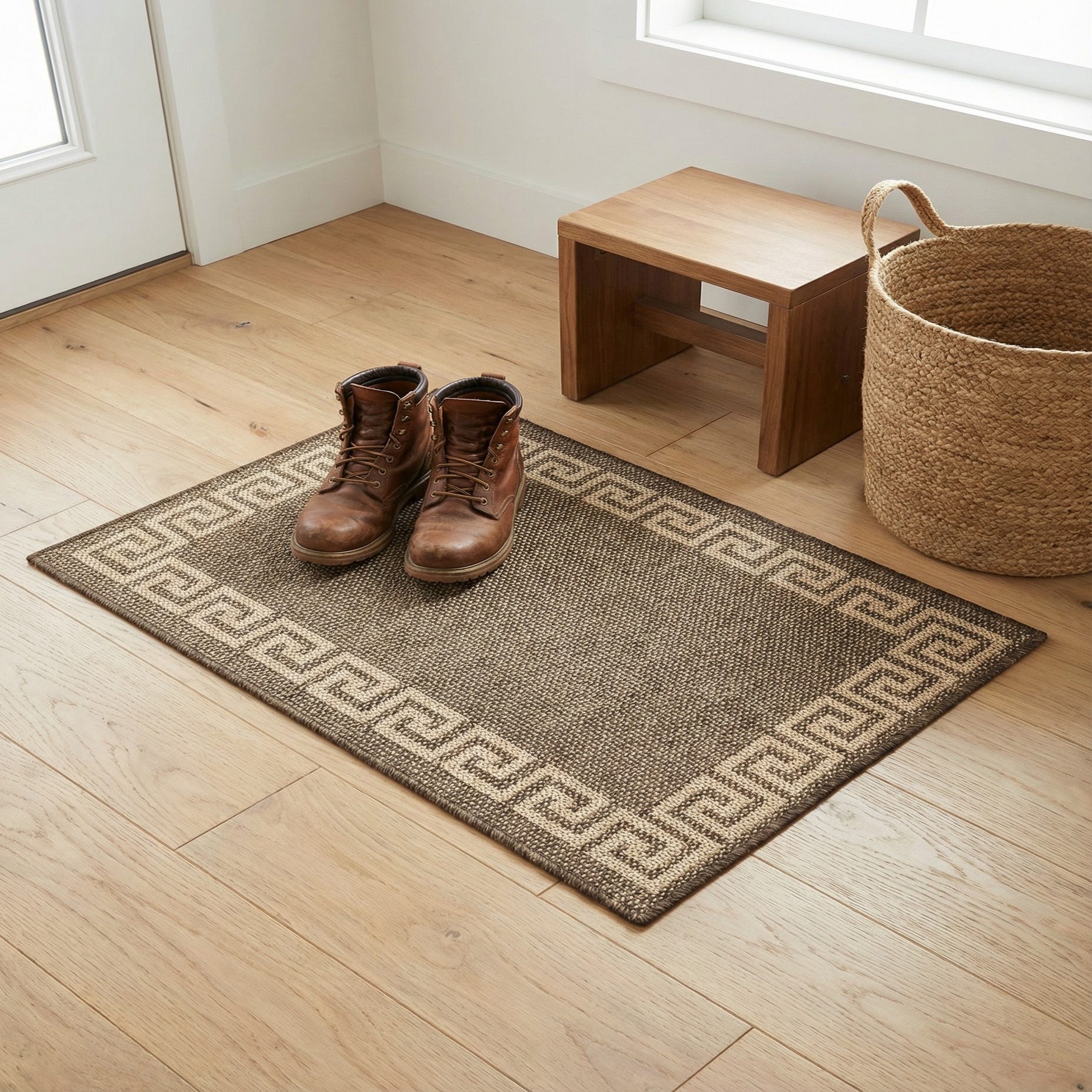 Primary color is Brown. Colors in this rug include: Brown, Natural.