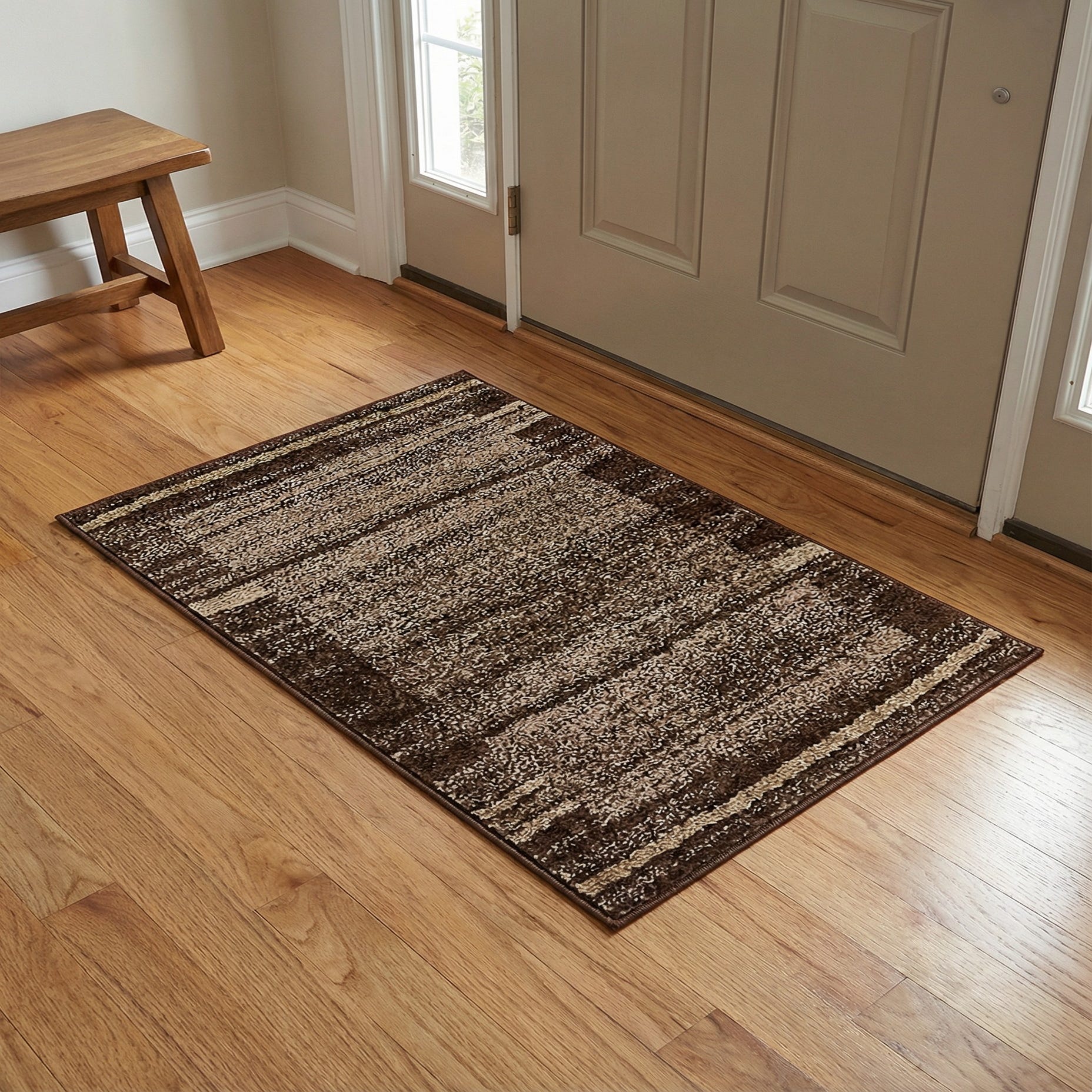 Primary color is Brown. Colors in this rug include: Brown, Beige.