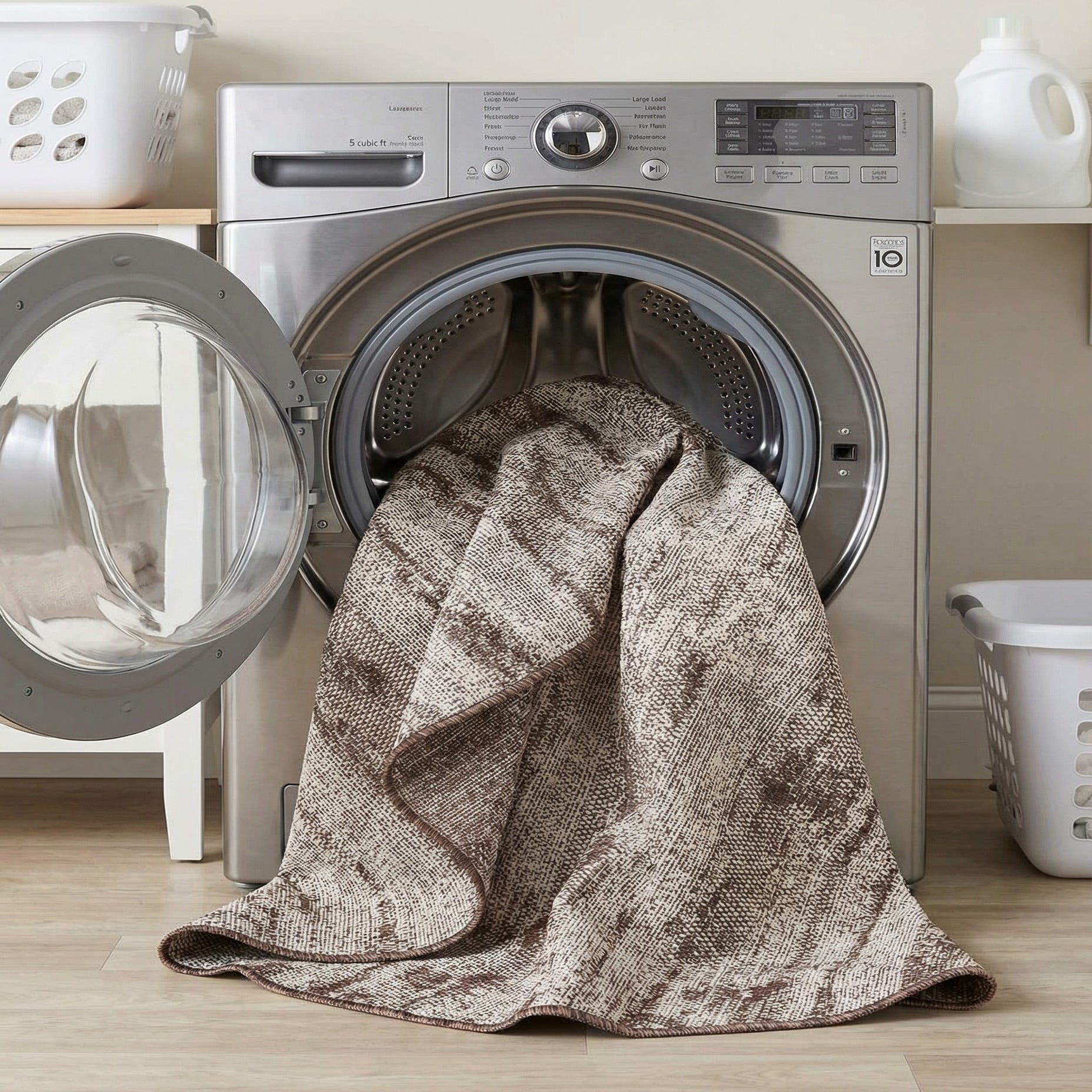 Primary color is Brown. Colors in this rug include: Brown, Ivory.