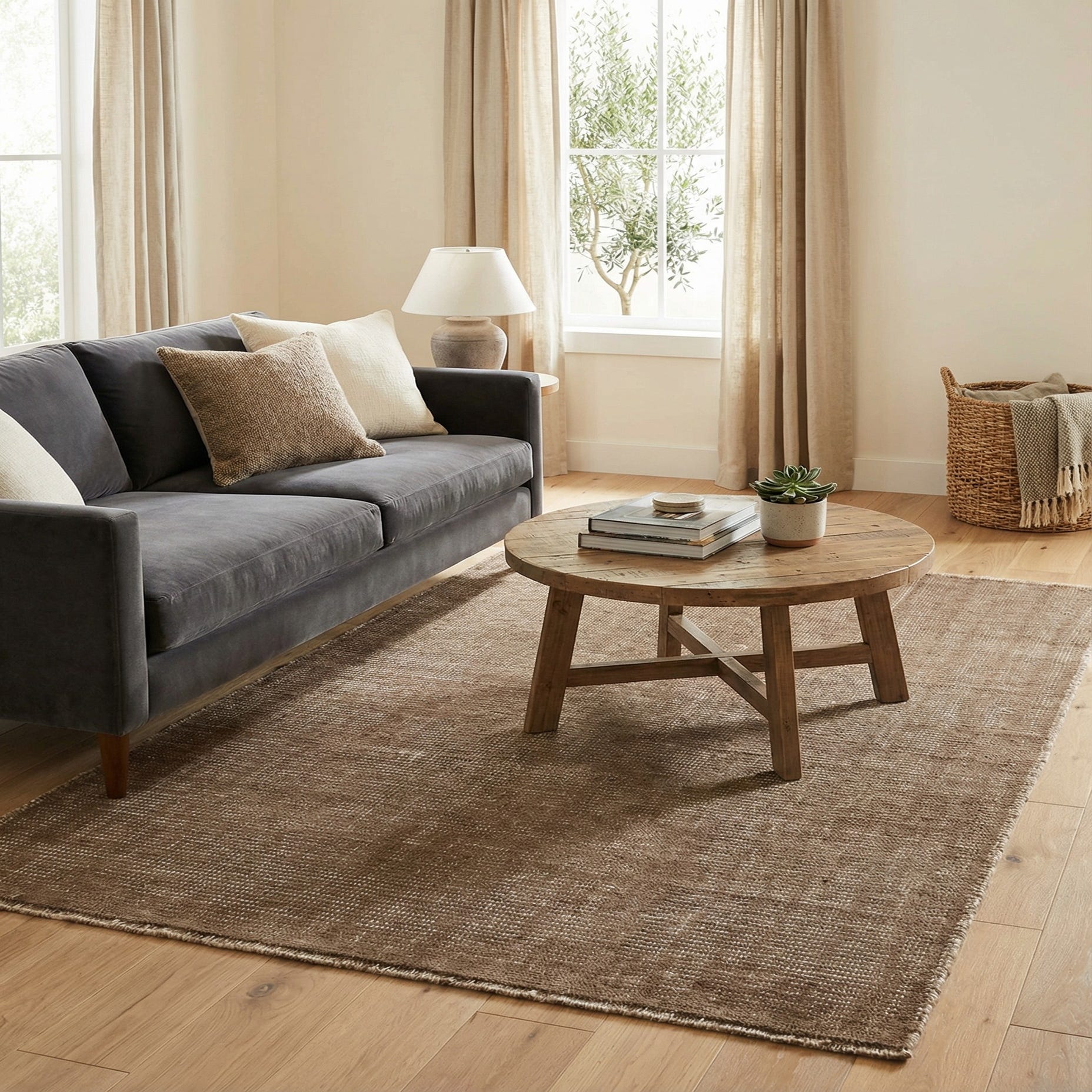 Primary color is Brown. Colors in this rug include: Brown, Beige.