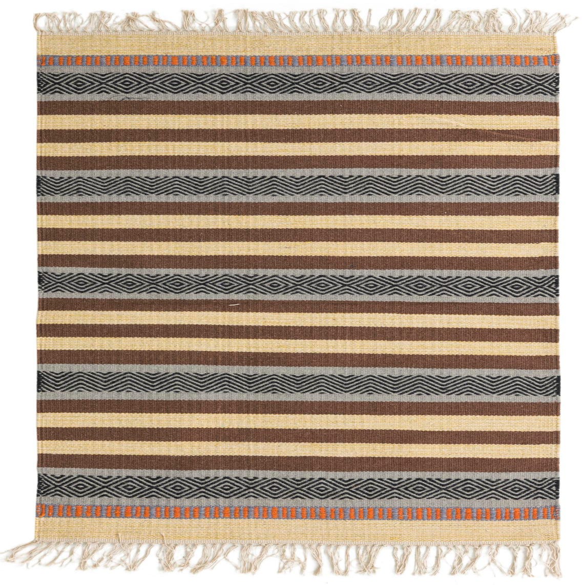 Primary color is Brown. Colors in this rug include: Brown, Gray, Ivory, Orange, Black.