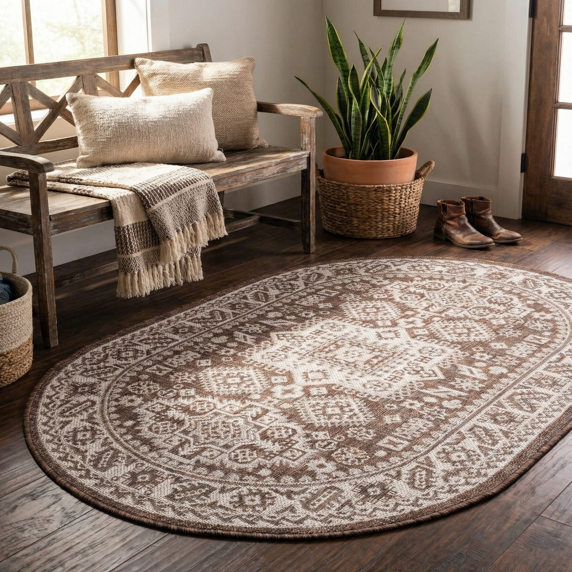 3' x 5' 3 Washable Aztec Indoor / Outdoor Oval Rug