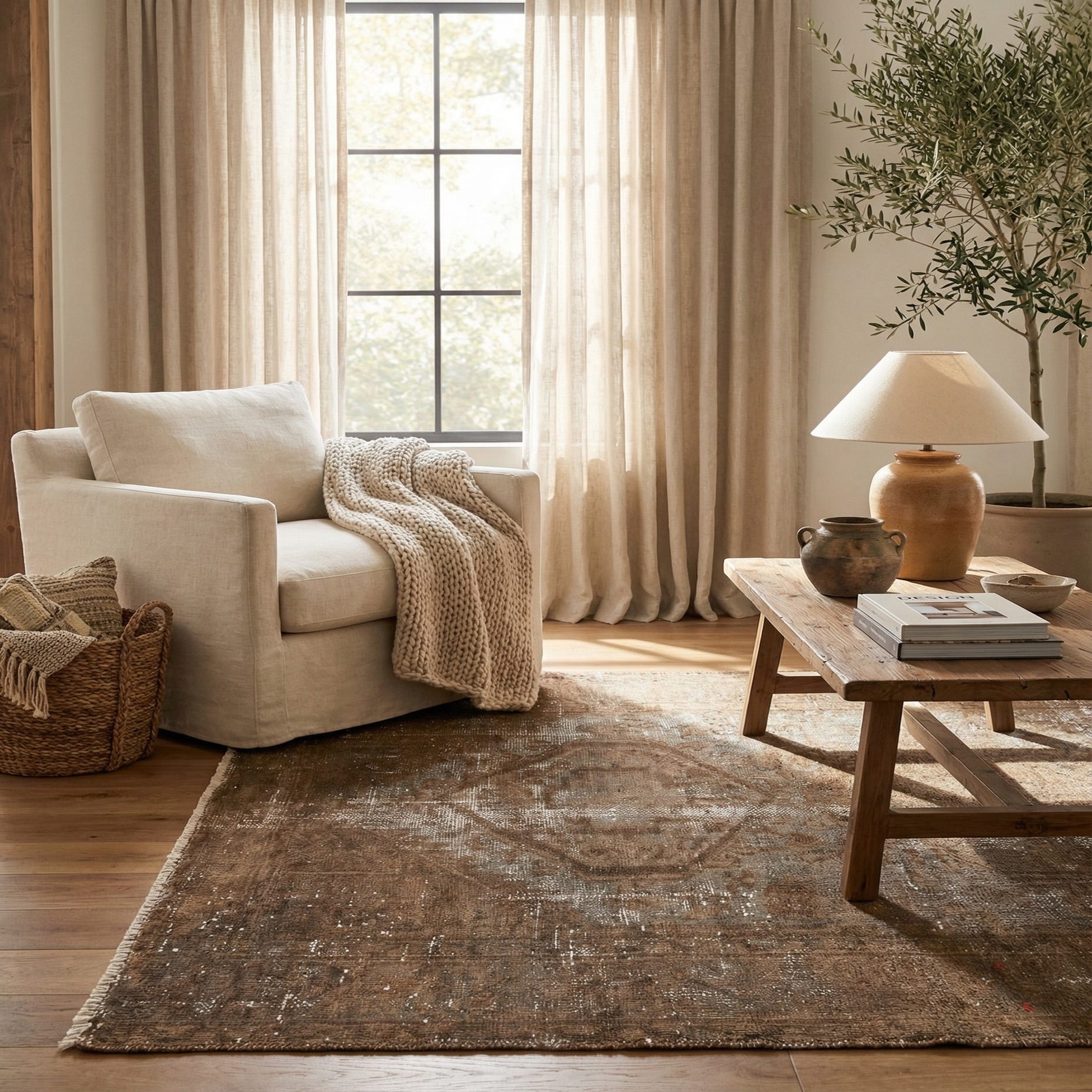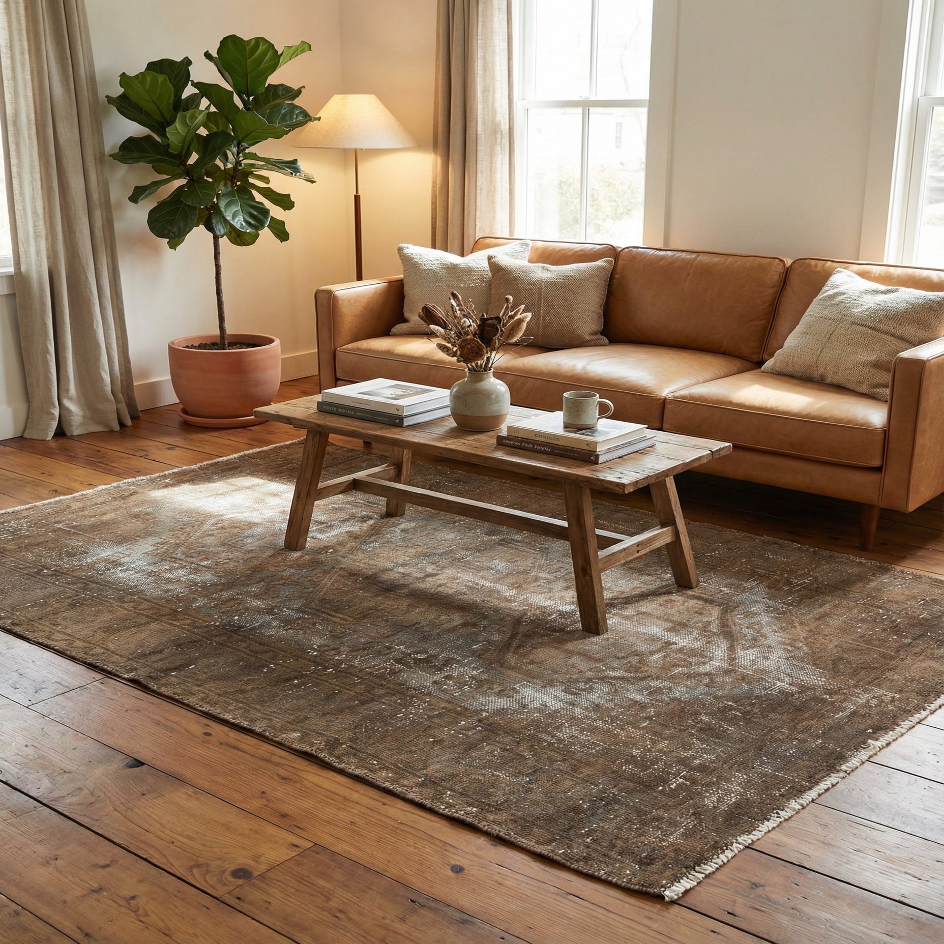Primary color is Brown. Colors in this rug include: Brown, Light Brown.