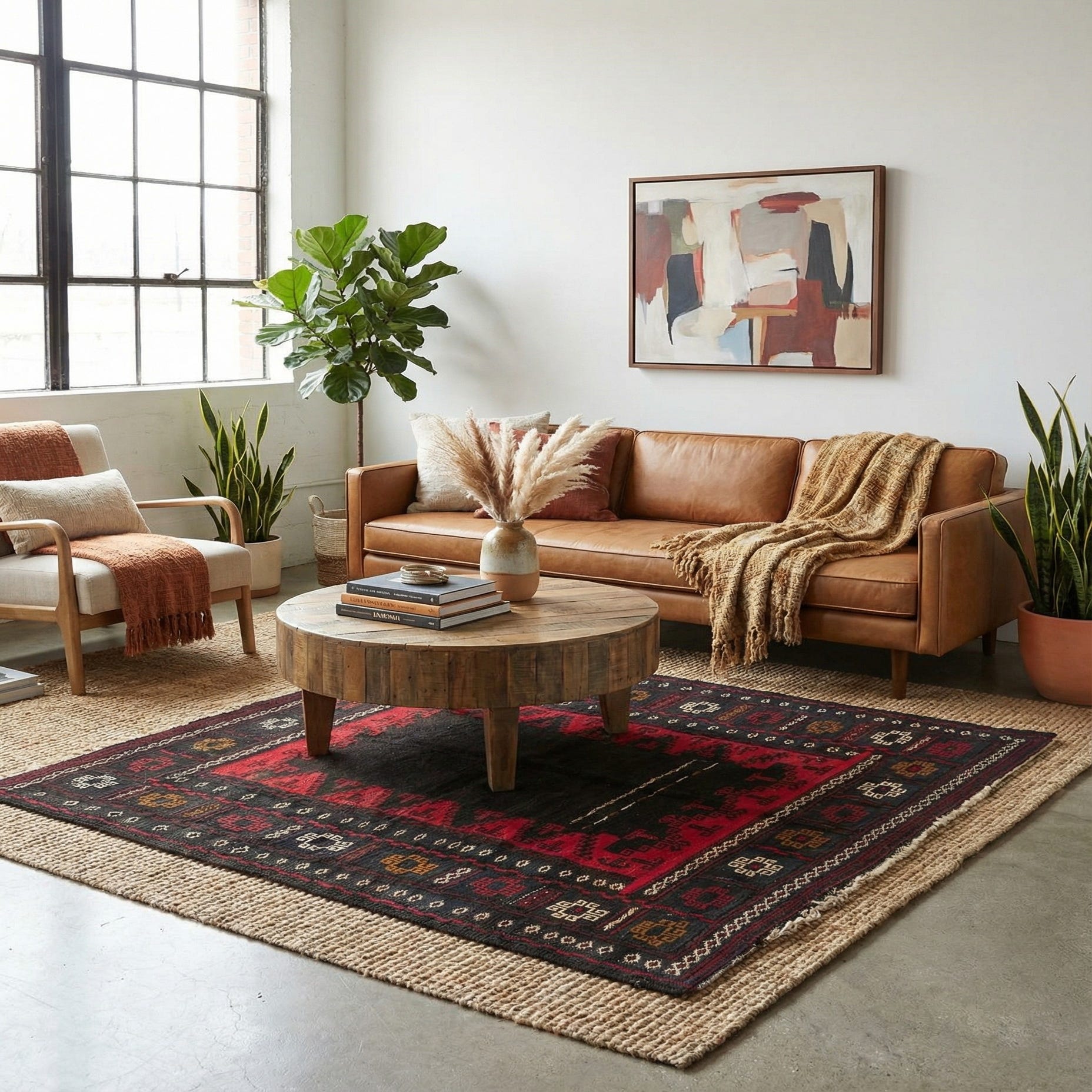 Primary color is Brown. Colors in this rug include: Brown, Ivory, Red, Light Brown.