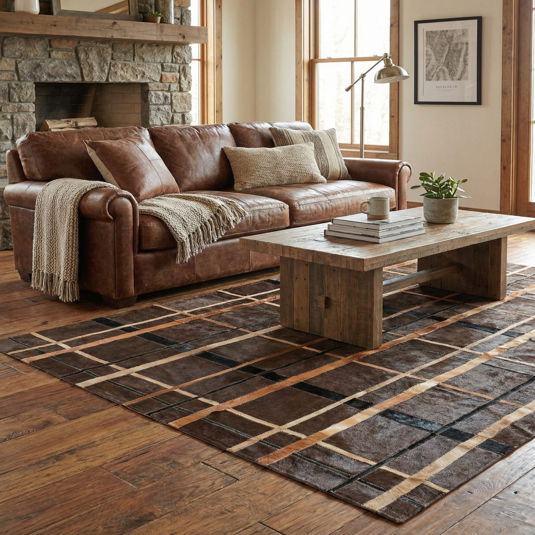 Primary color is Brown. Colors in this rug include: Brown, Beige, Black, Light Brown.