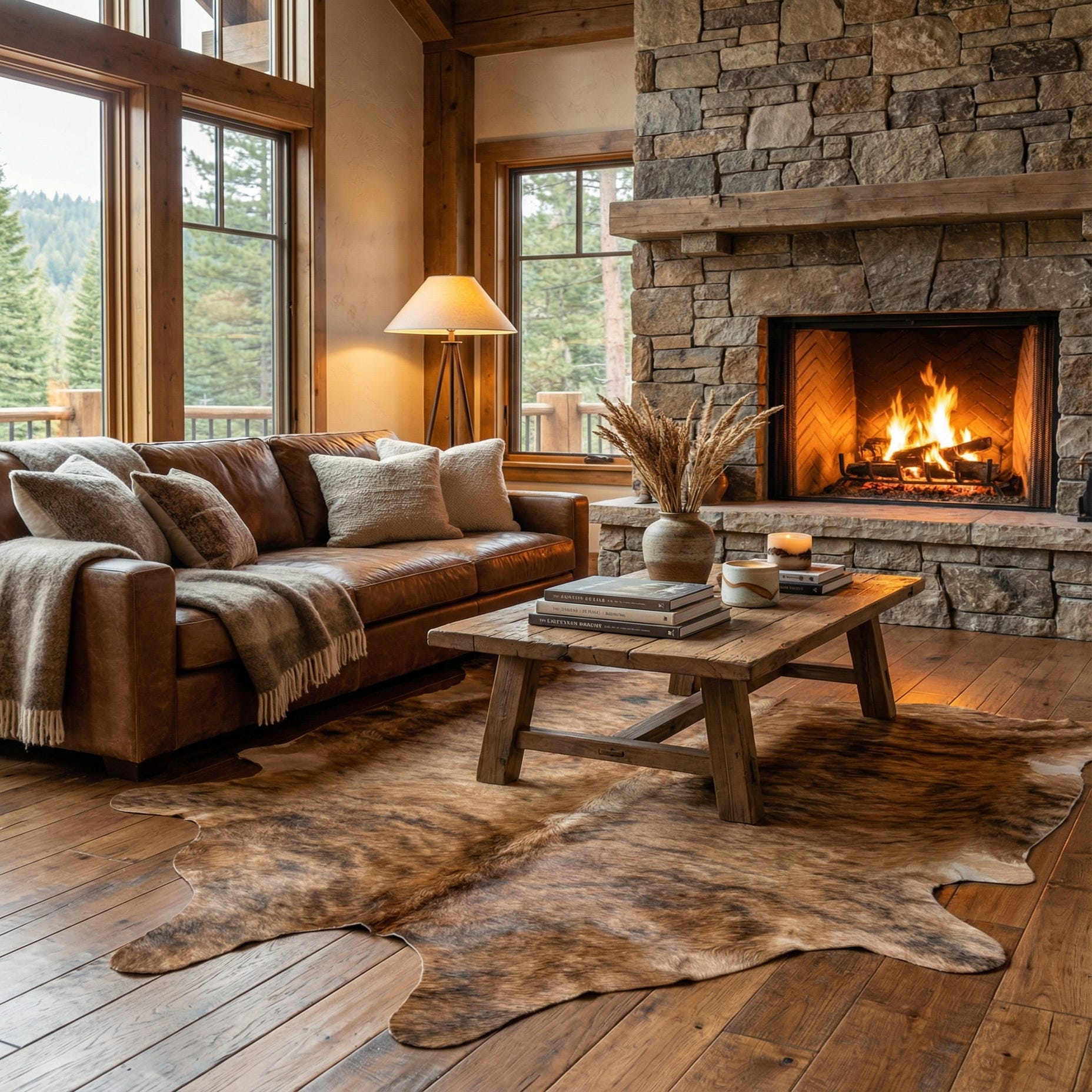 Detail image of 4' 8 x 5' 4 Cowhide Leather Rug