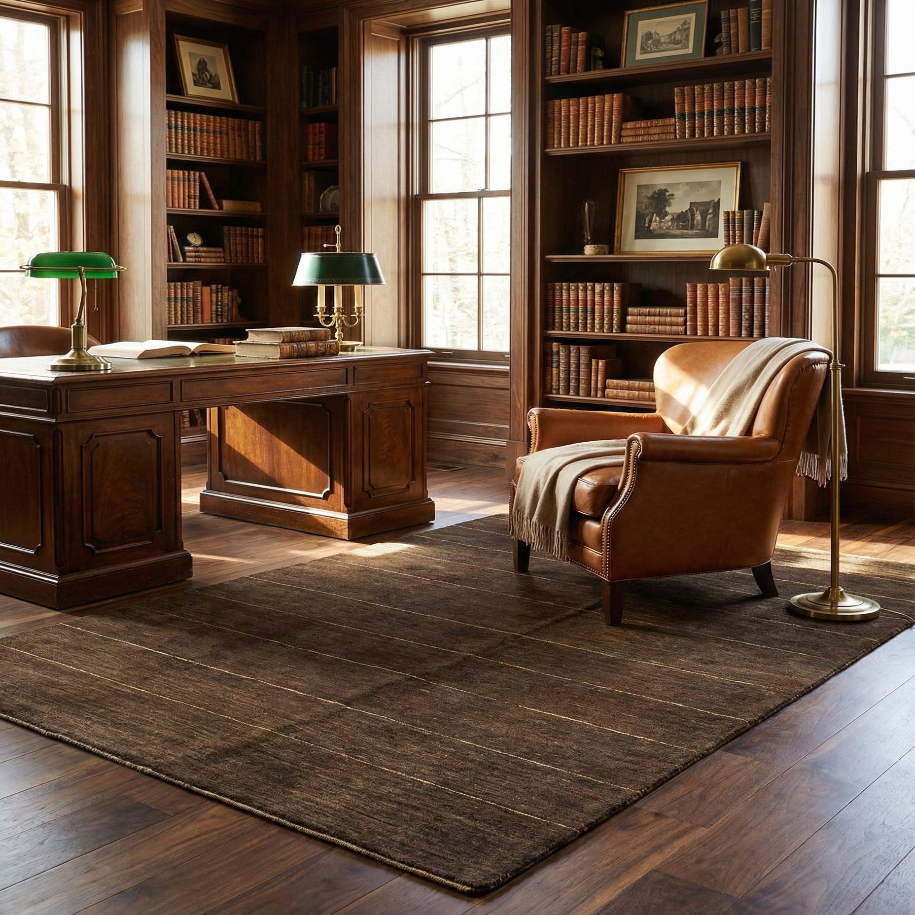 Primary color is Brown. Colors in this rug include: Brown, Brown, Cream.