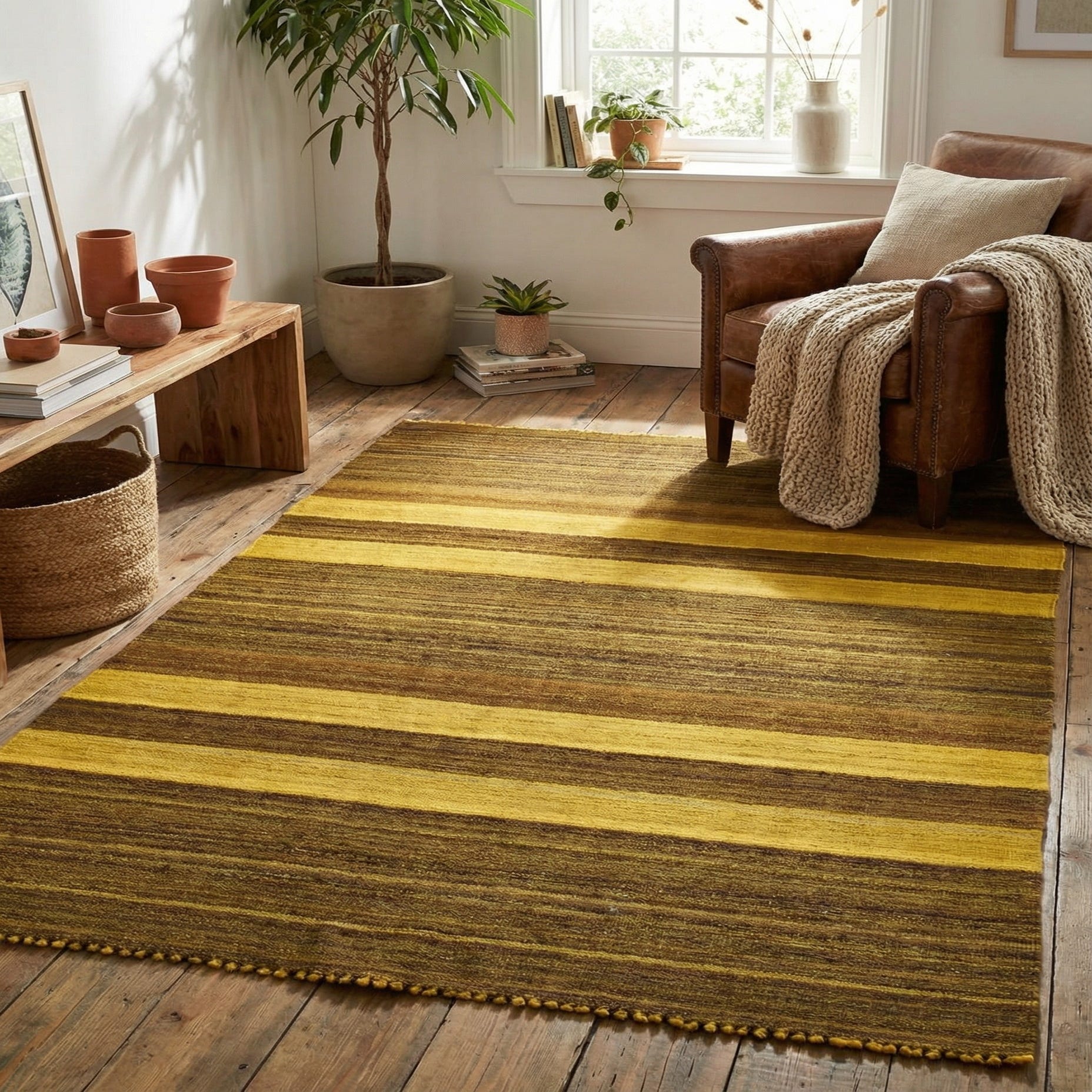 Primary color is Brown. Colors in this rug include: Brown, Gold, Light Brown, Tan.