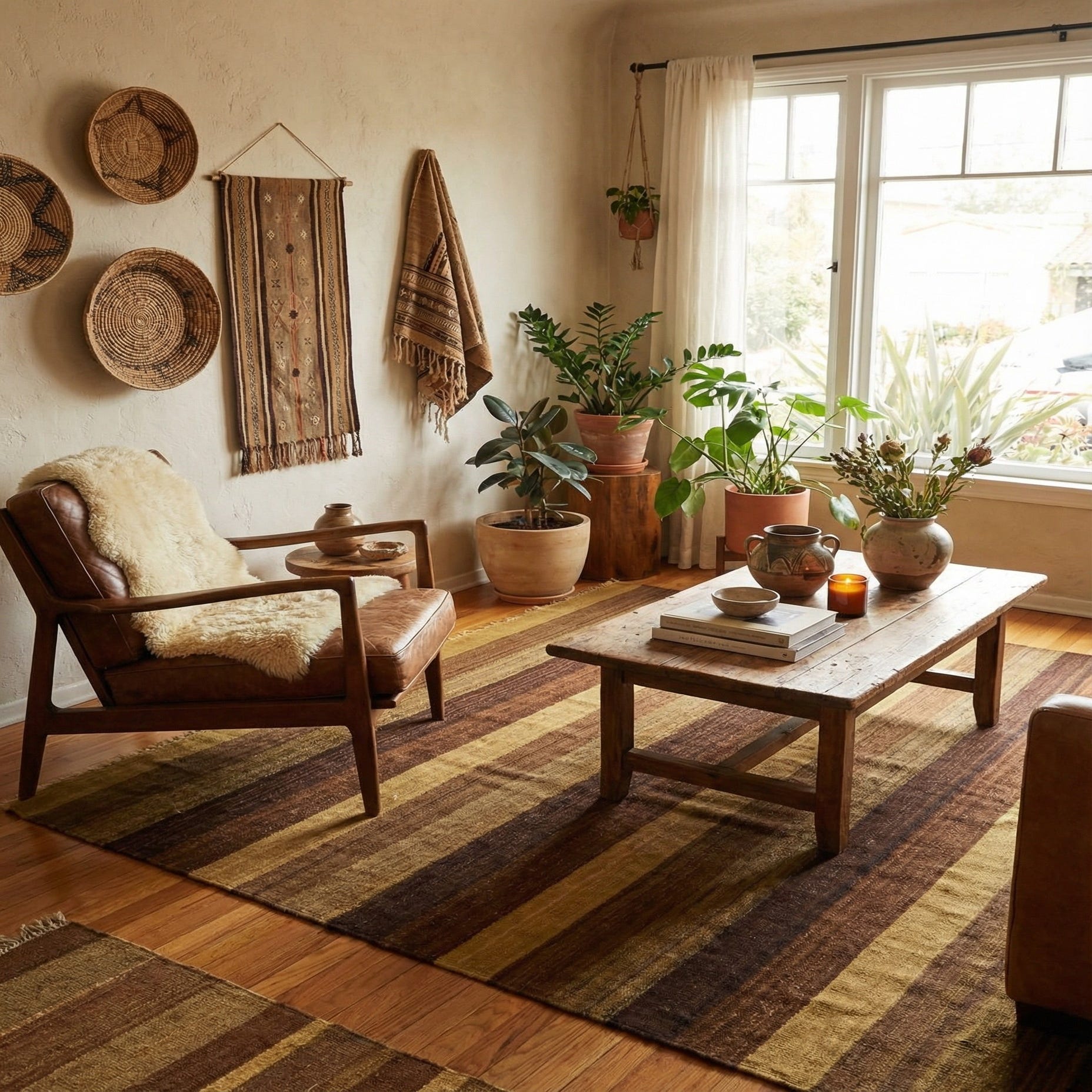 Primary color is Brown. Colors in this rug include: Brown, Light Brown, Tan.