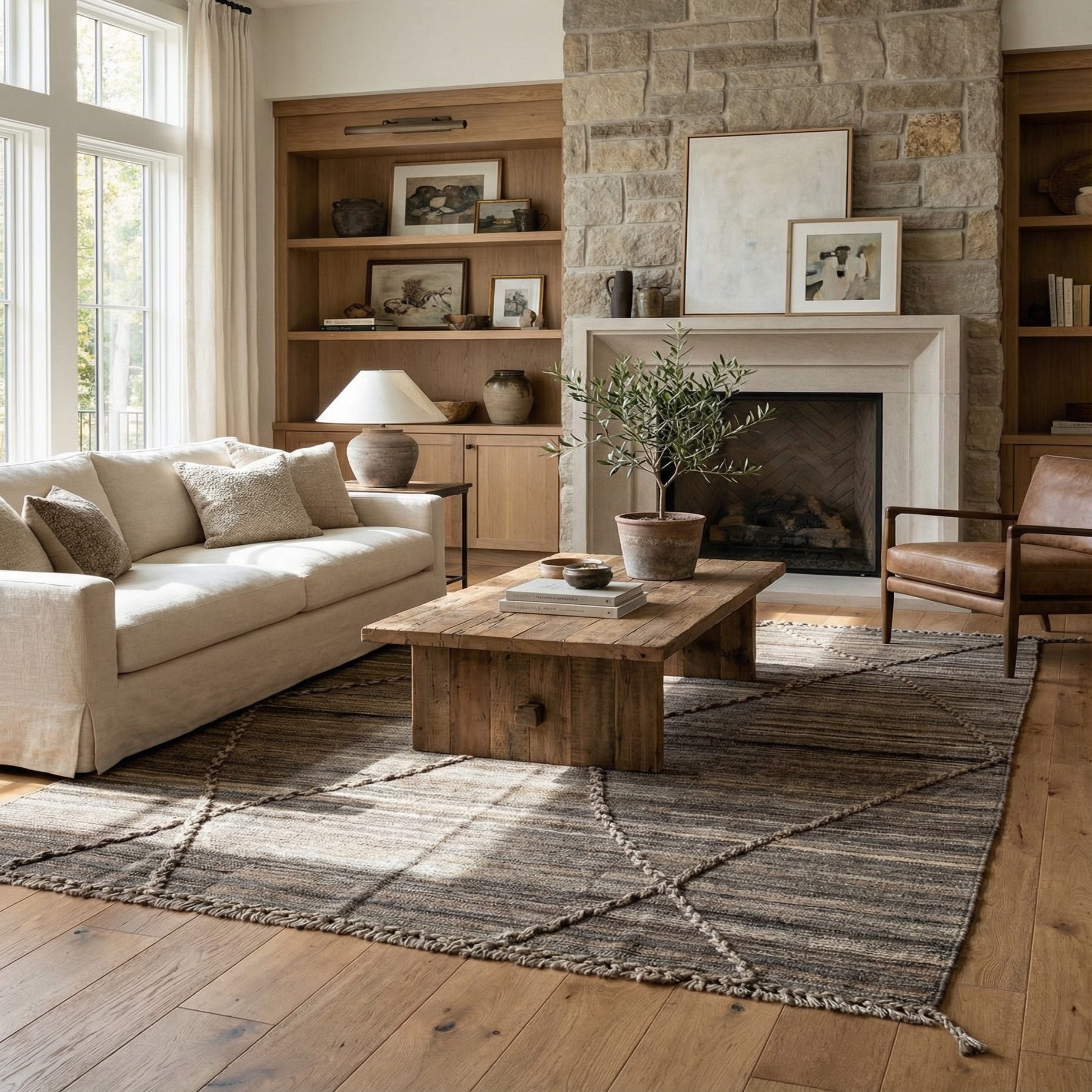 Primary color is Brown. Colors in this rug include: Brown, Light Brown.