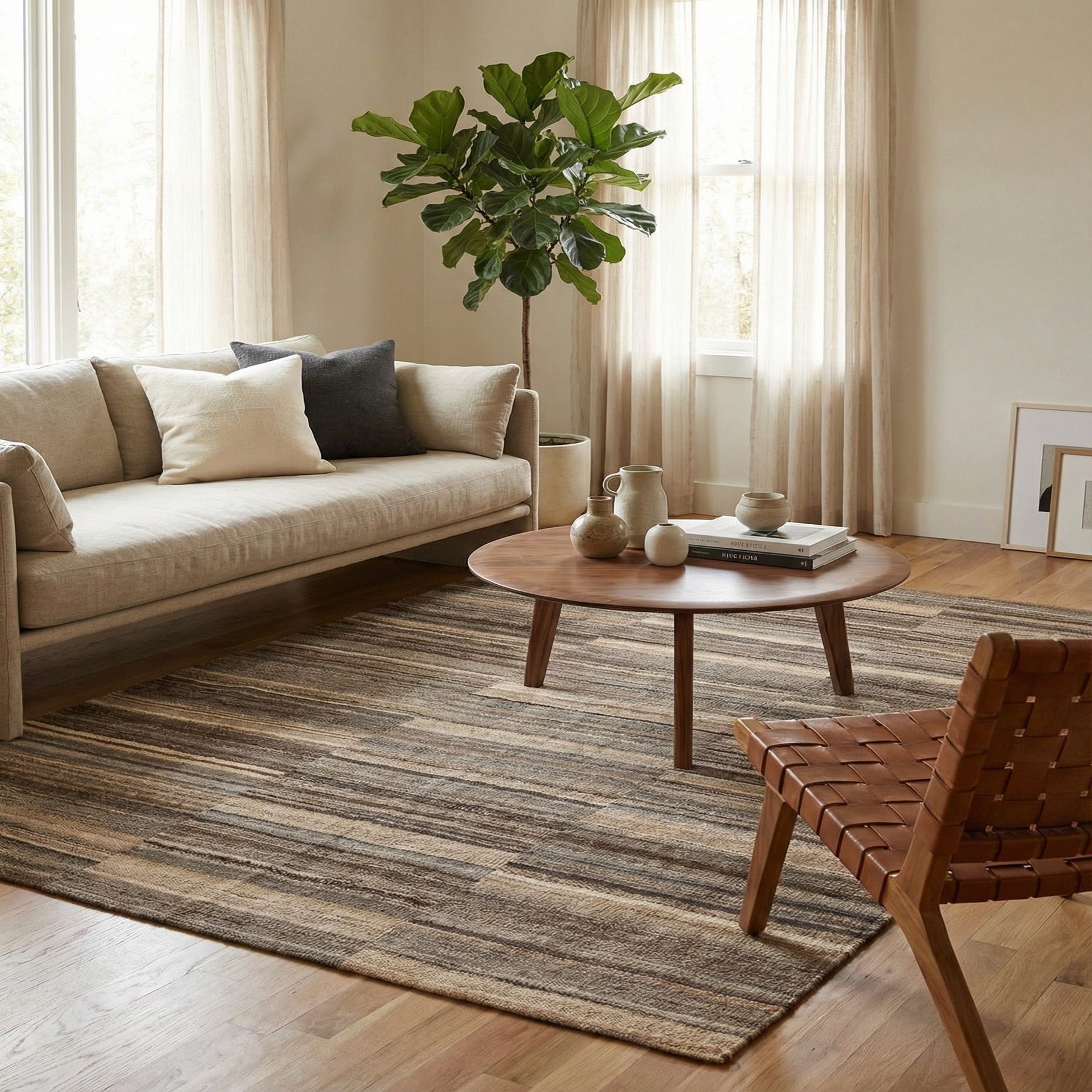 Primary color is Brown. Colors in this rug include: Brown, Beige, Light Brown.