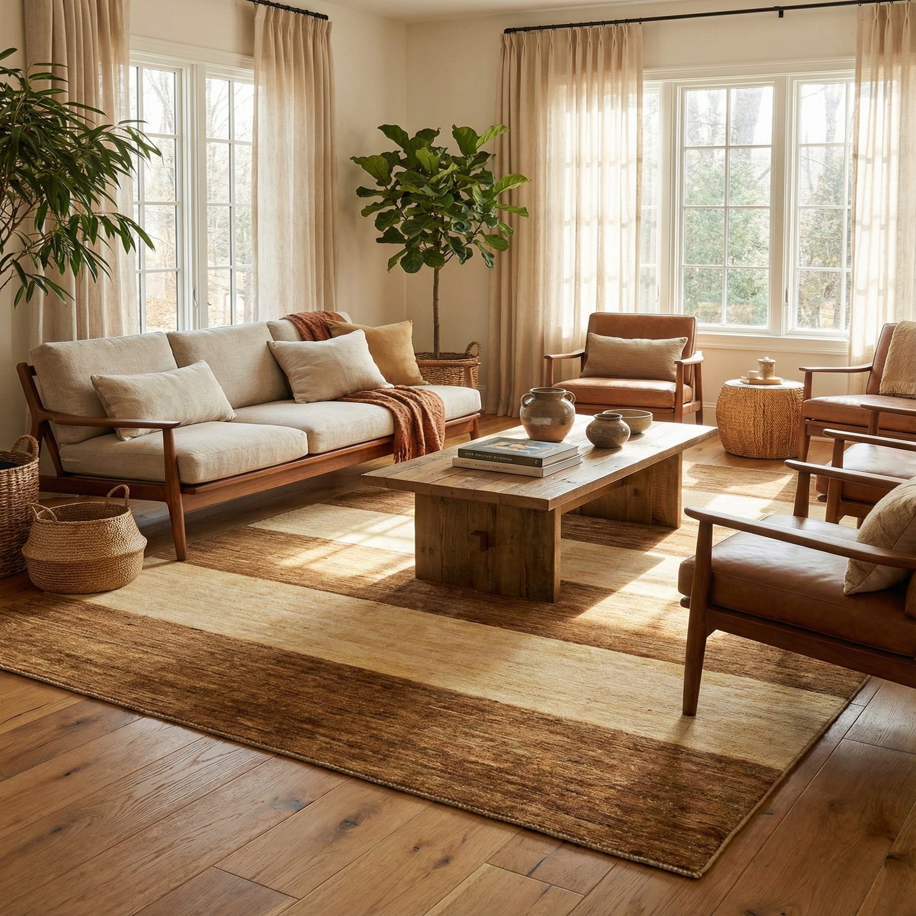 Primary color is Brown. Colors in this rug include: Brown, Cream.