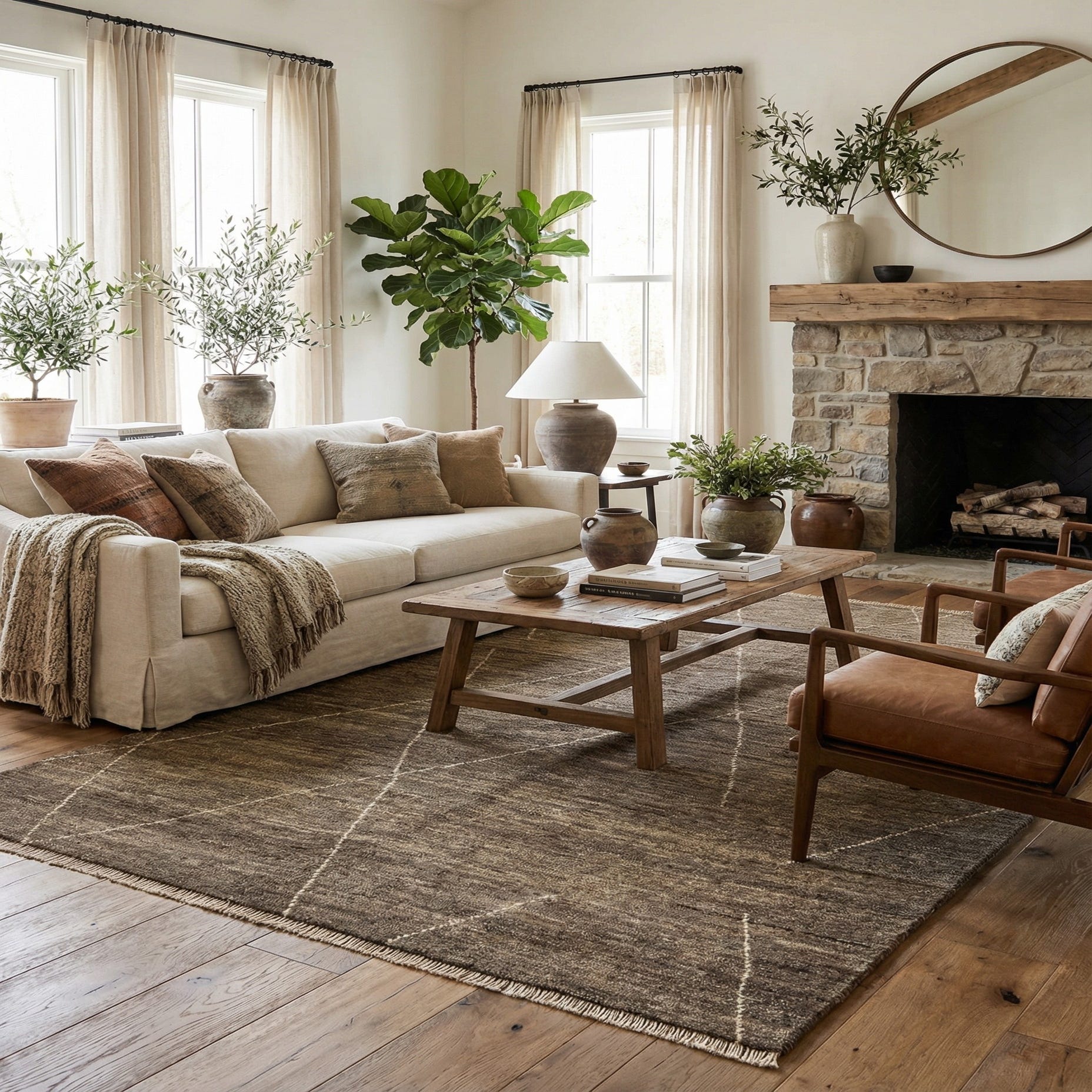 Primary color is Brown. Colors in this rug include: Brown, Black, Cream.