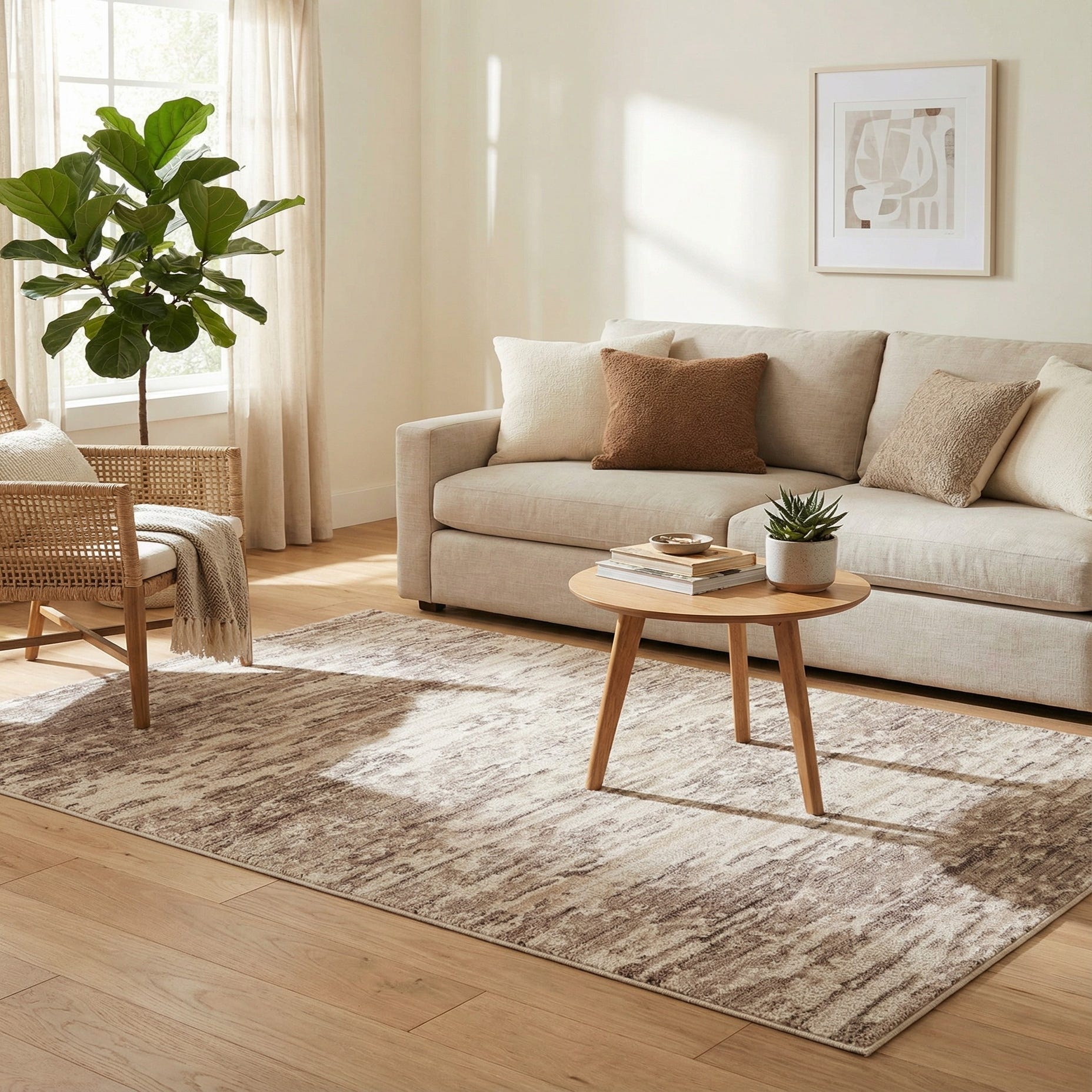 Primary color is Brown. Colors in this rug include: Brown, Beige, Ivory.