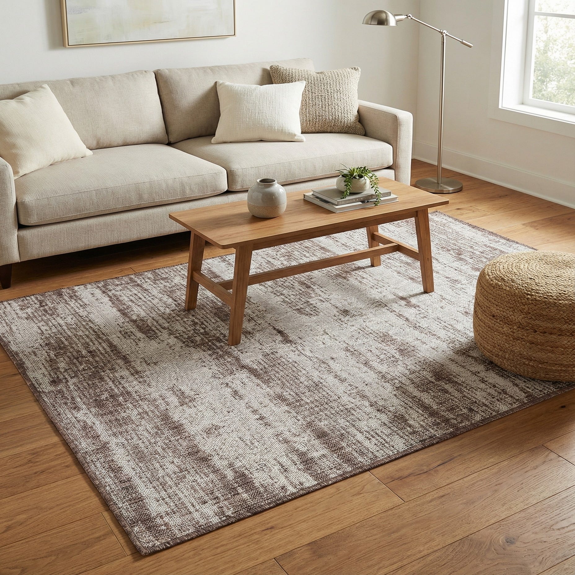 Primary color is Brown. Colors in this rug include: Brown, Ivory.