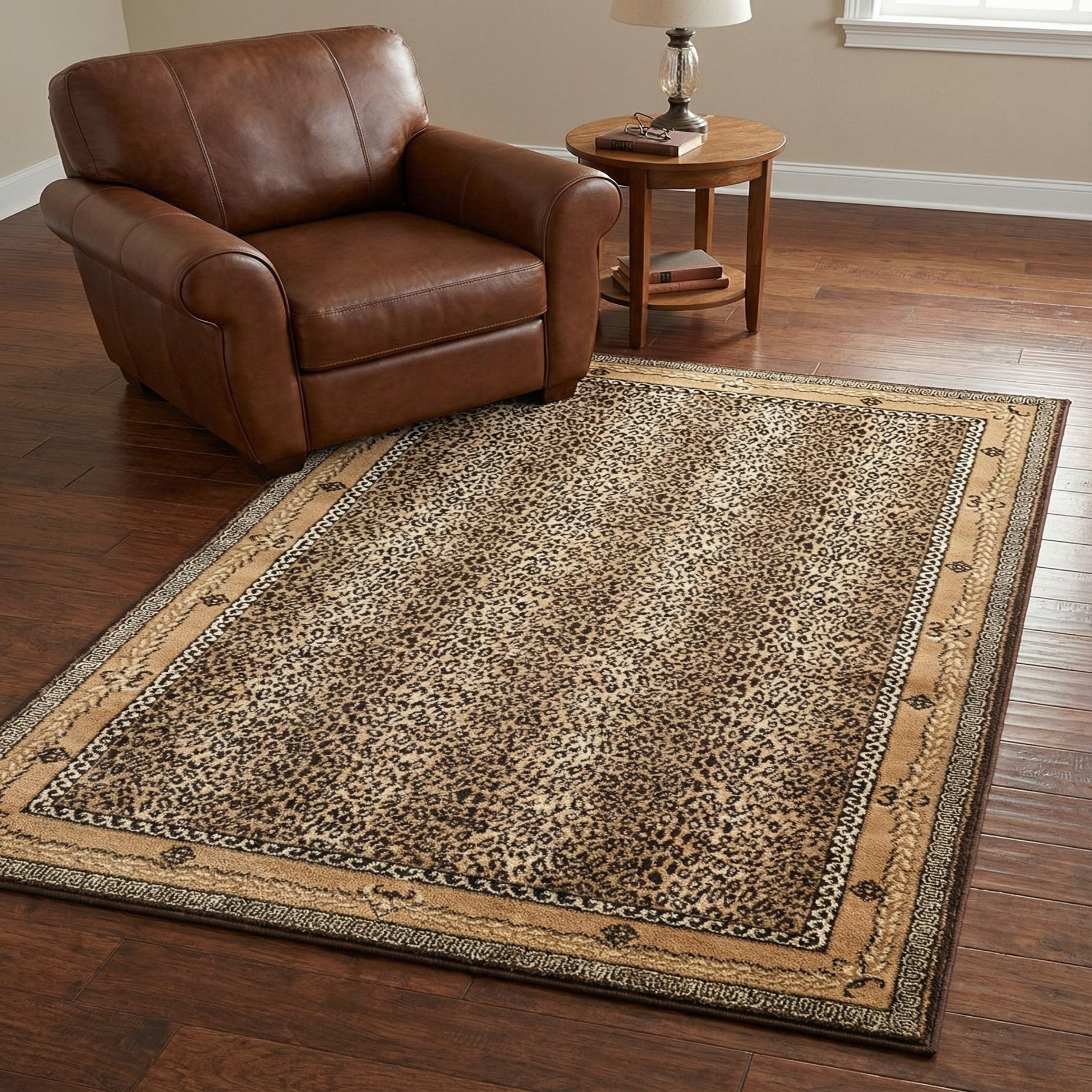 Primary color is Brown. Colors in this rug include: Brown, Beige, Ivory.