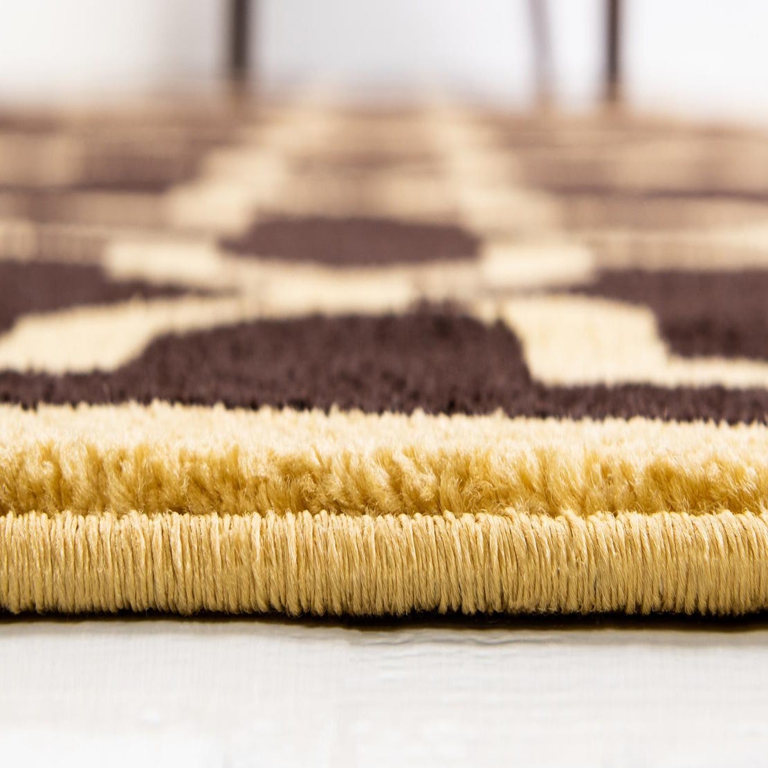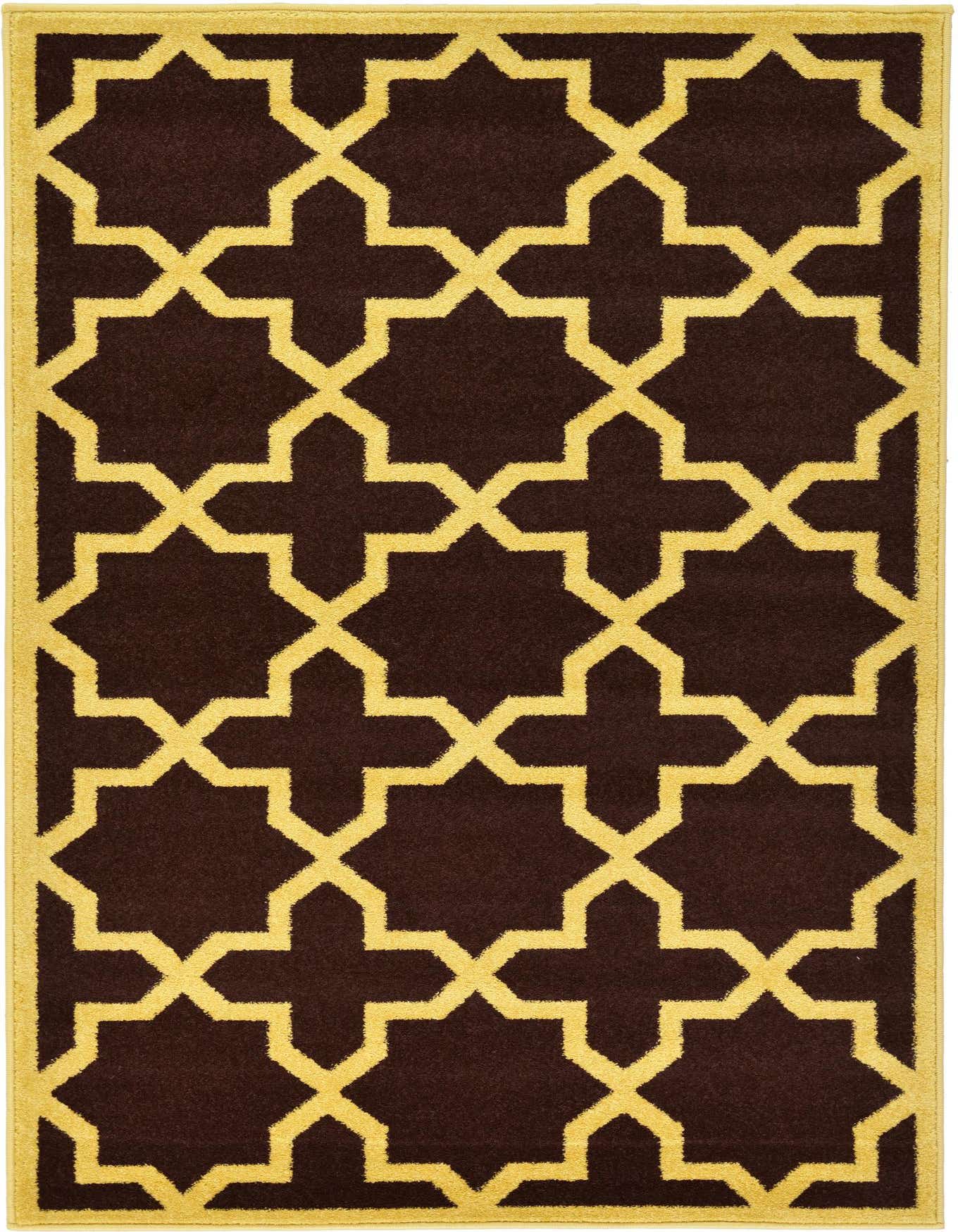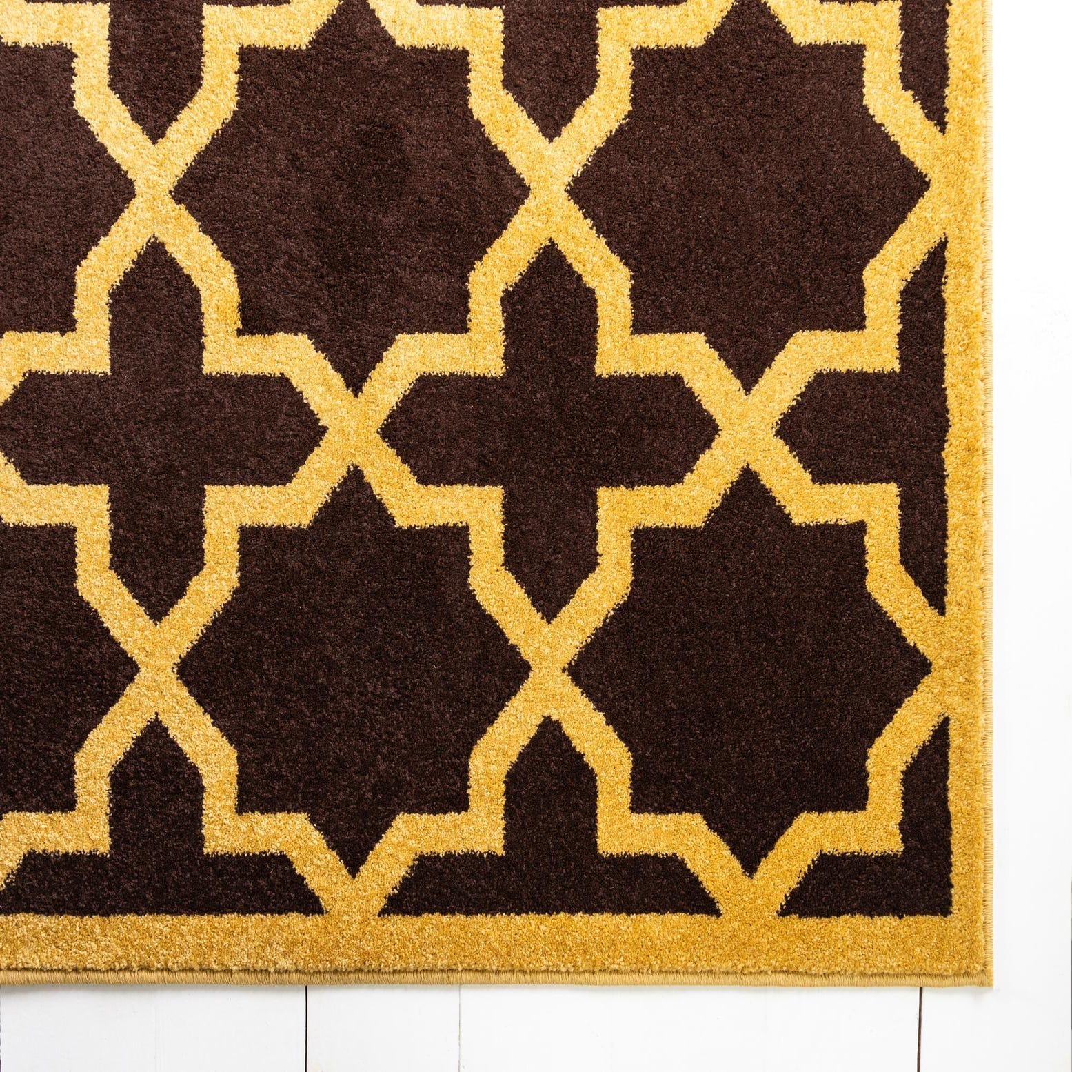 Primary color is Brown. Colors in this rug include: Brown, Yellow.