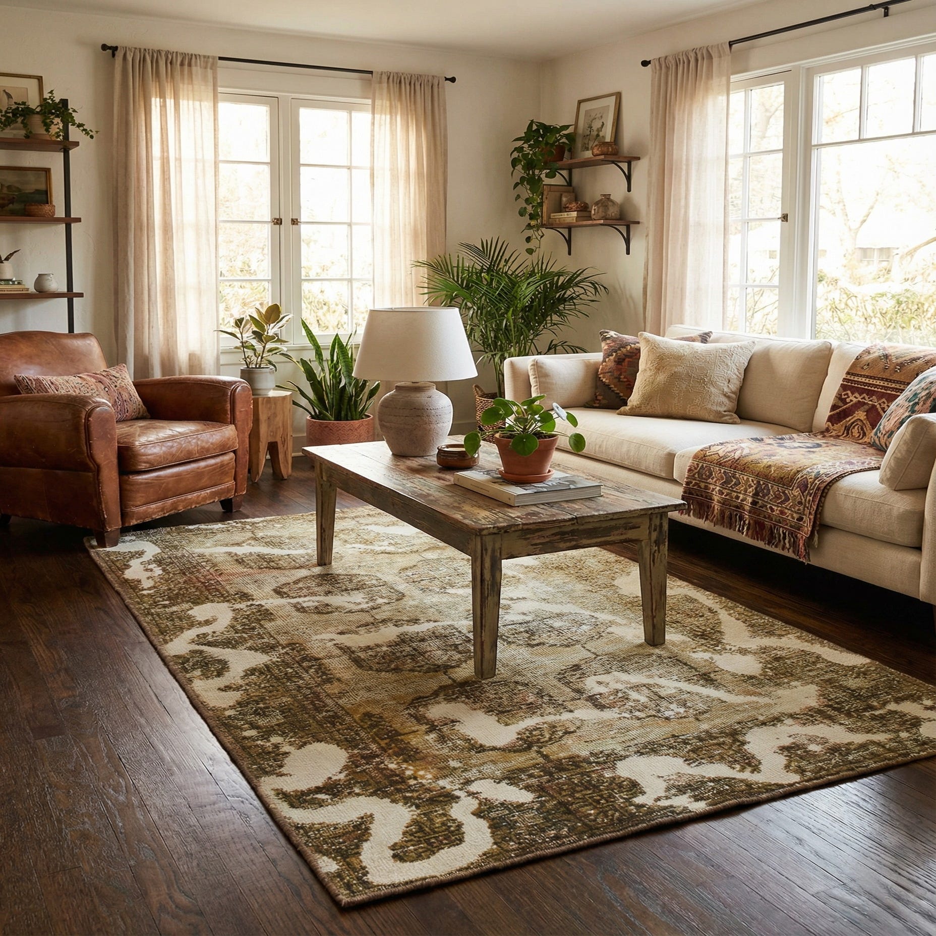 Primary color is Brown. Colors in this rug include: Brown, Beige, Light Brown, Ivory.
