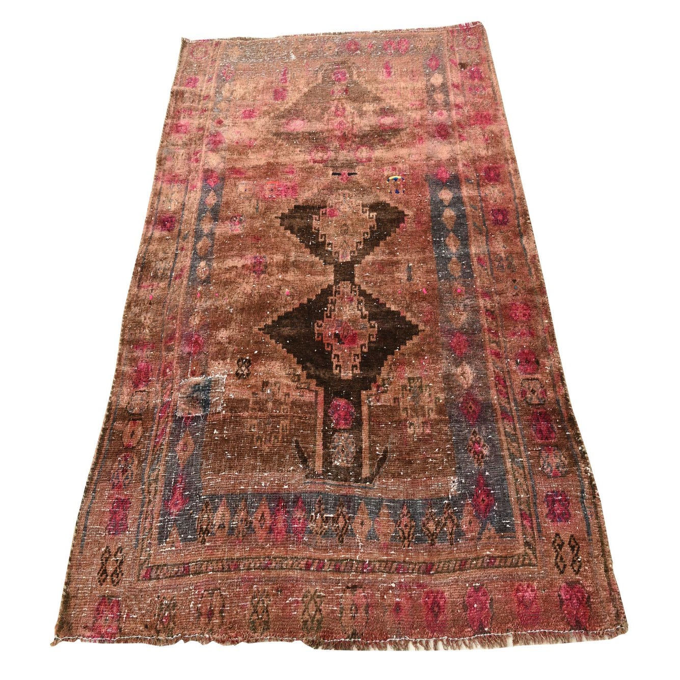 This Persian Ultra Vintage rug is an antique Persian Rug that has been washed, over-dyed, and then shaved down to a low pile. Look at the detail pictures to fully appreciate the uniqueness of this piece.