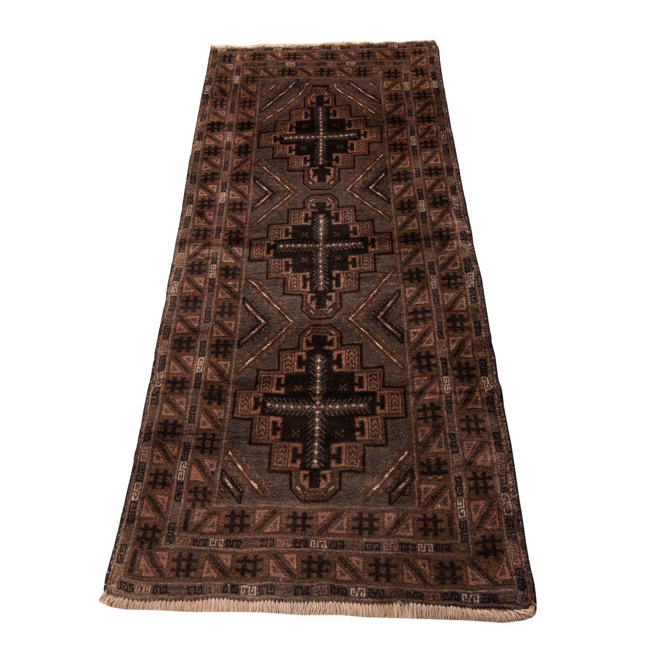 Primary color is Brown. Colors in this rug include: Brown, Black, Ivory, Gray.