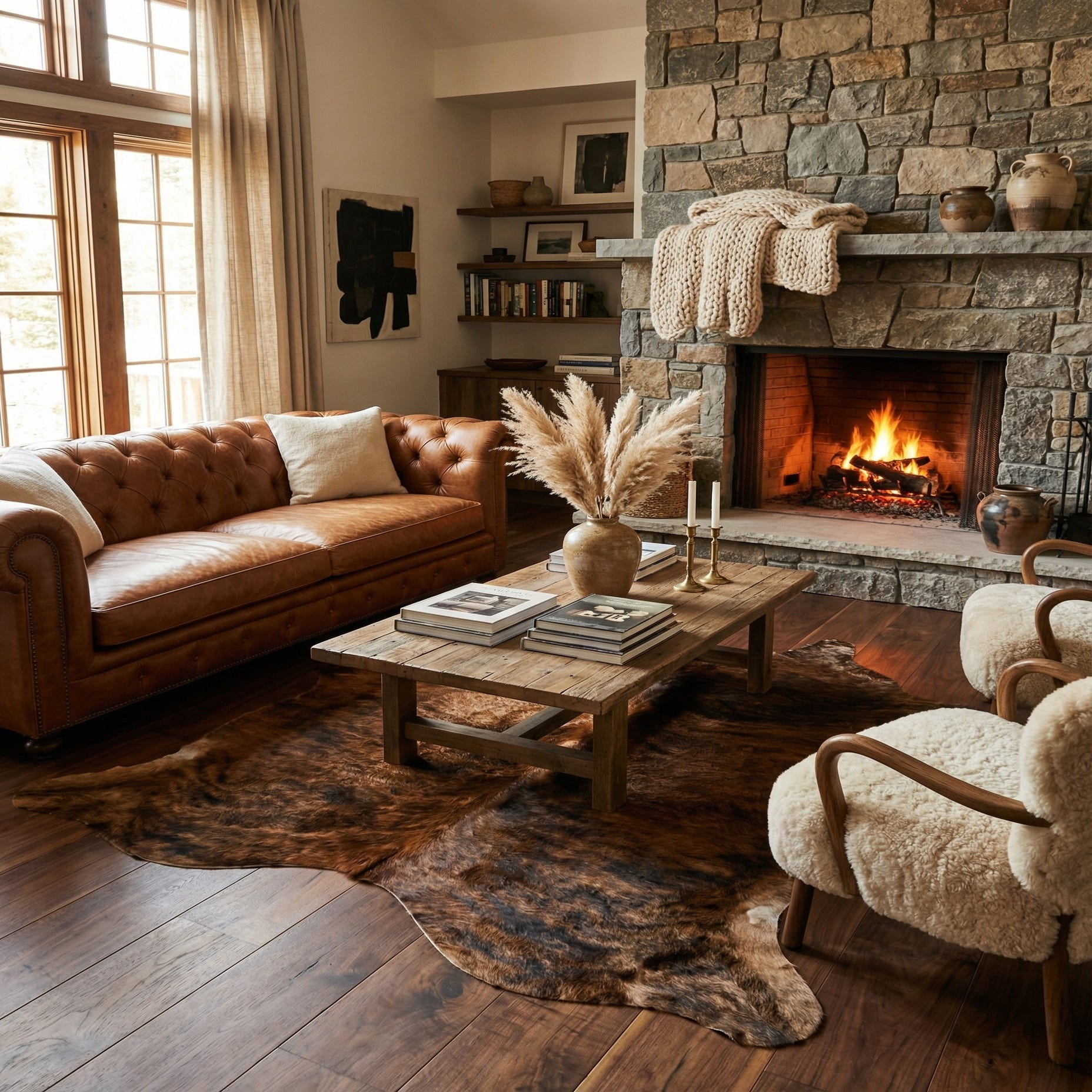 Detail image of 5' x 5' 6 Cowhide Leather Square Rug