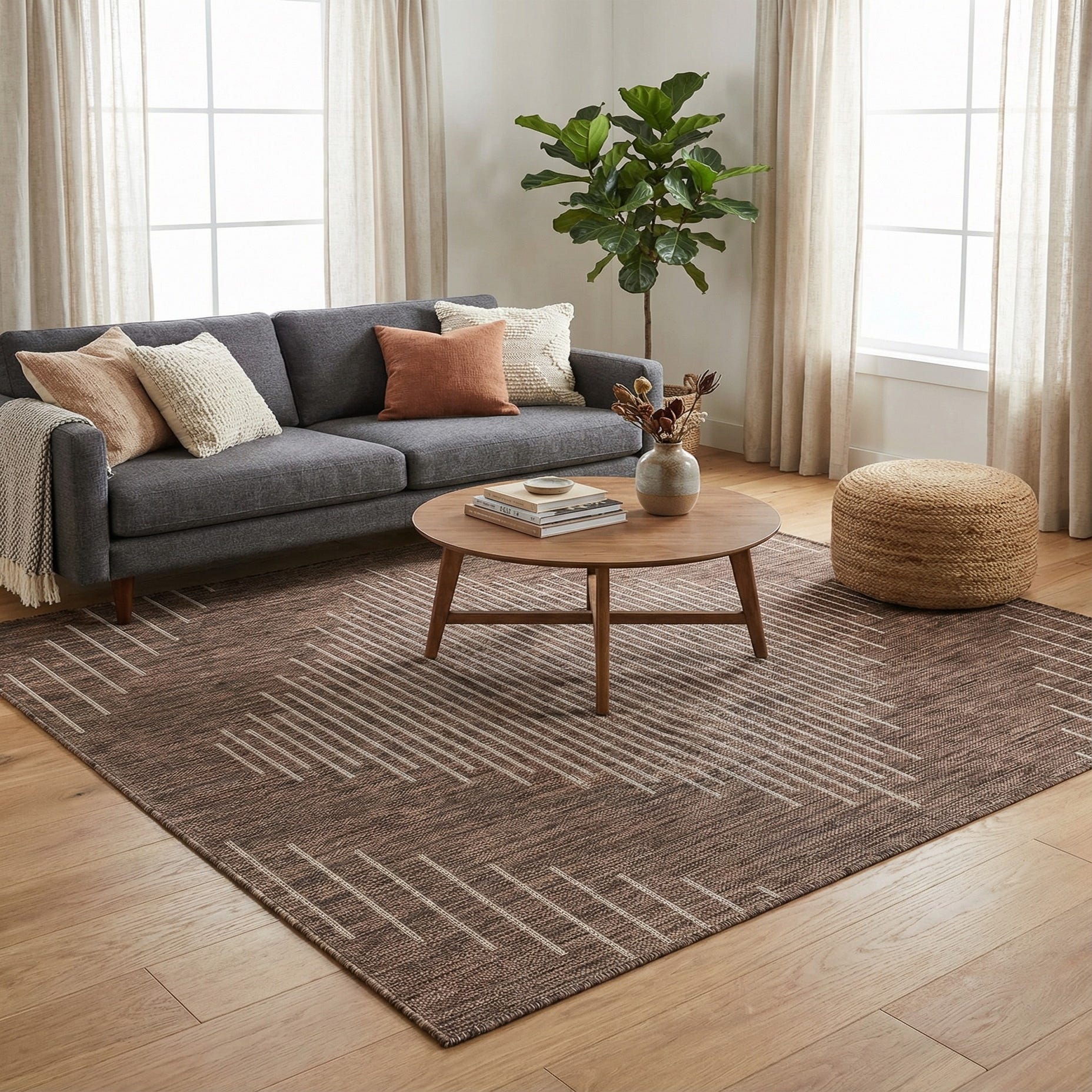 Primary color is Brown. Colors in this rug include: Brown, Ivory.