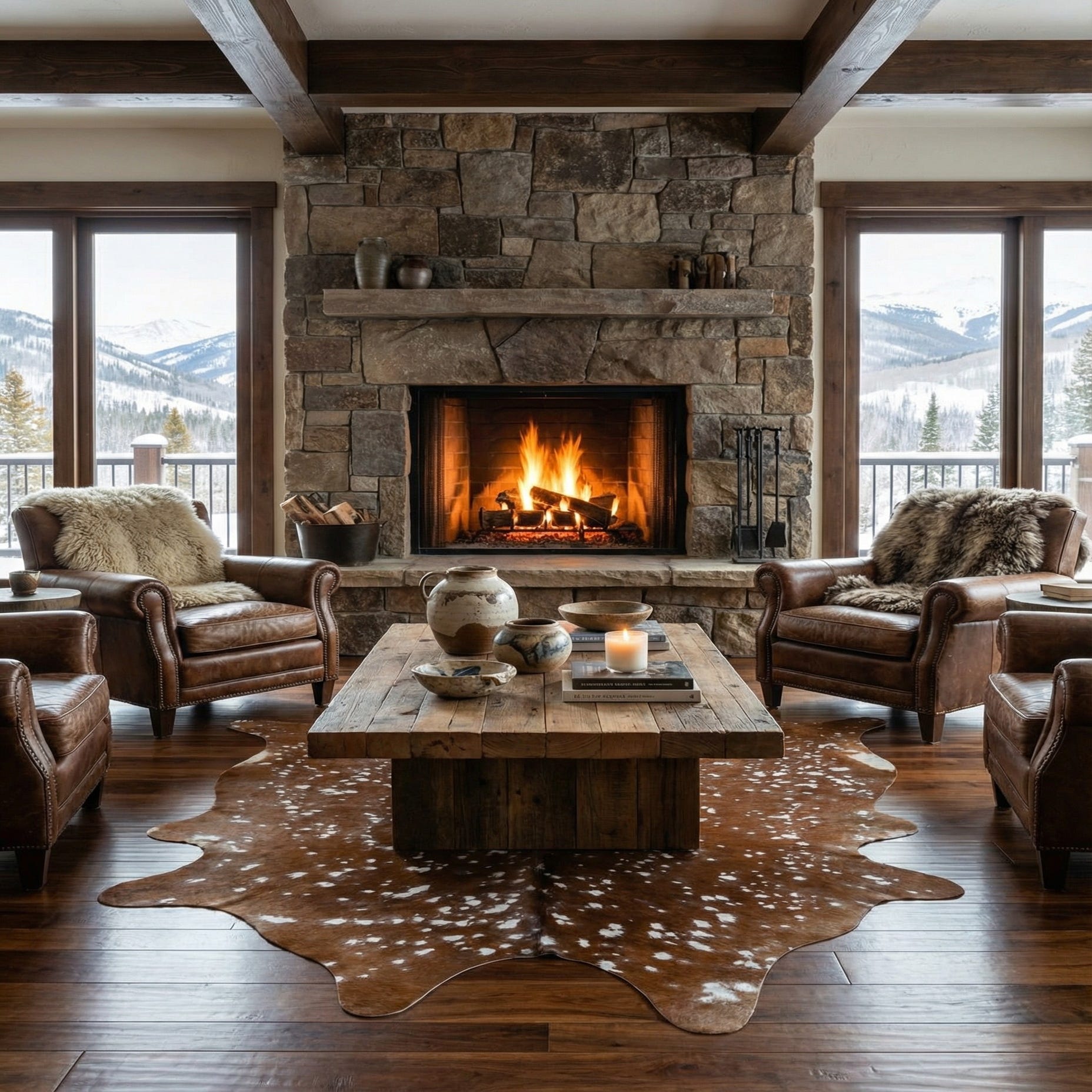 6' 4 x 6' 9 Cowhide Leather Freeform Rug