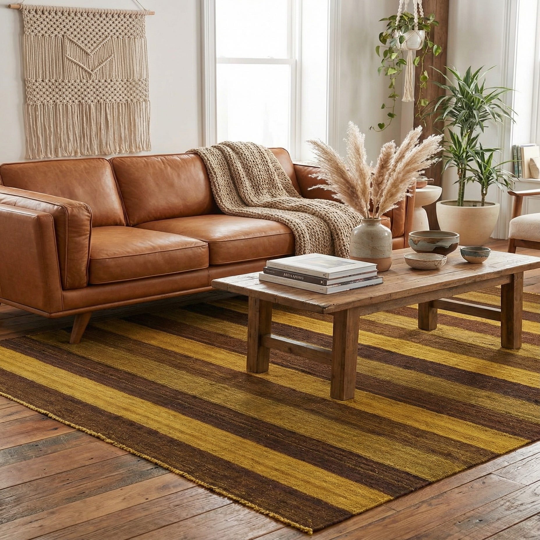Primary color is Brown. Colors in this rug include: Brown, Light Brown, Gold.