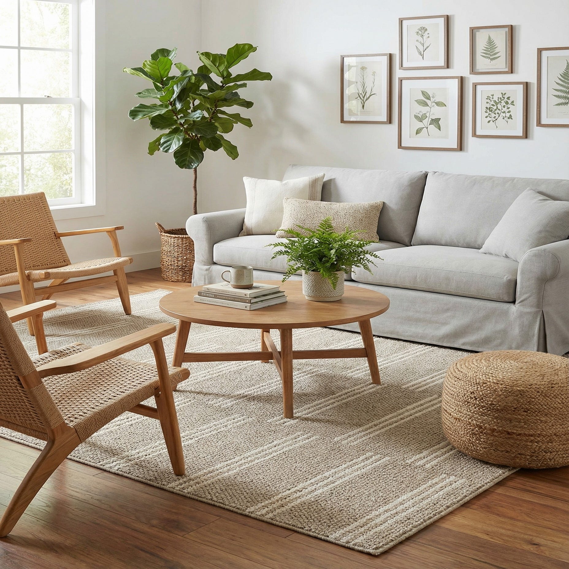 Primary color is Brown. Colors in this rug include: Brown, Ivory.