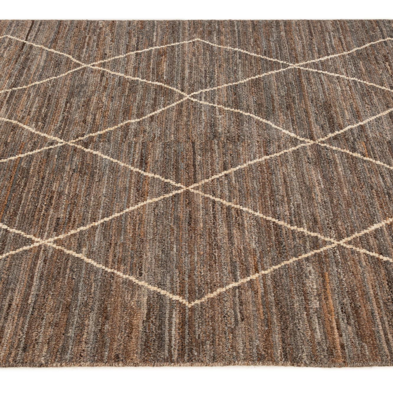 Primary color is Brown. Colors in this rug include: Brown, Ivory, Gray, Blue.