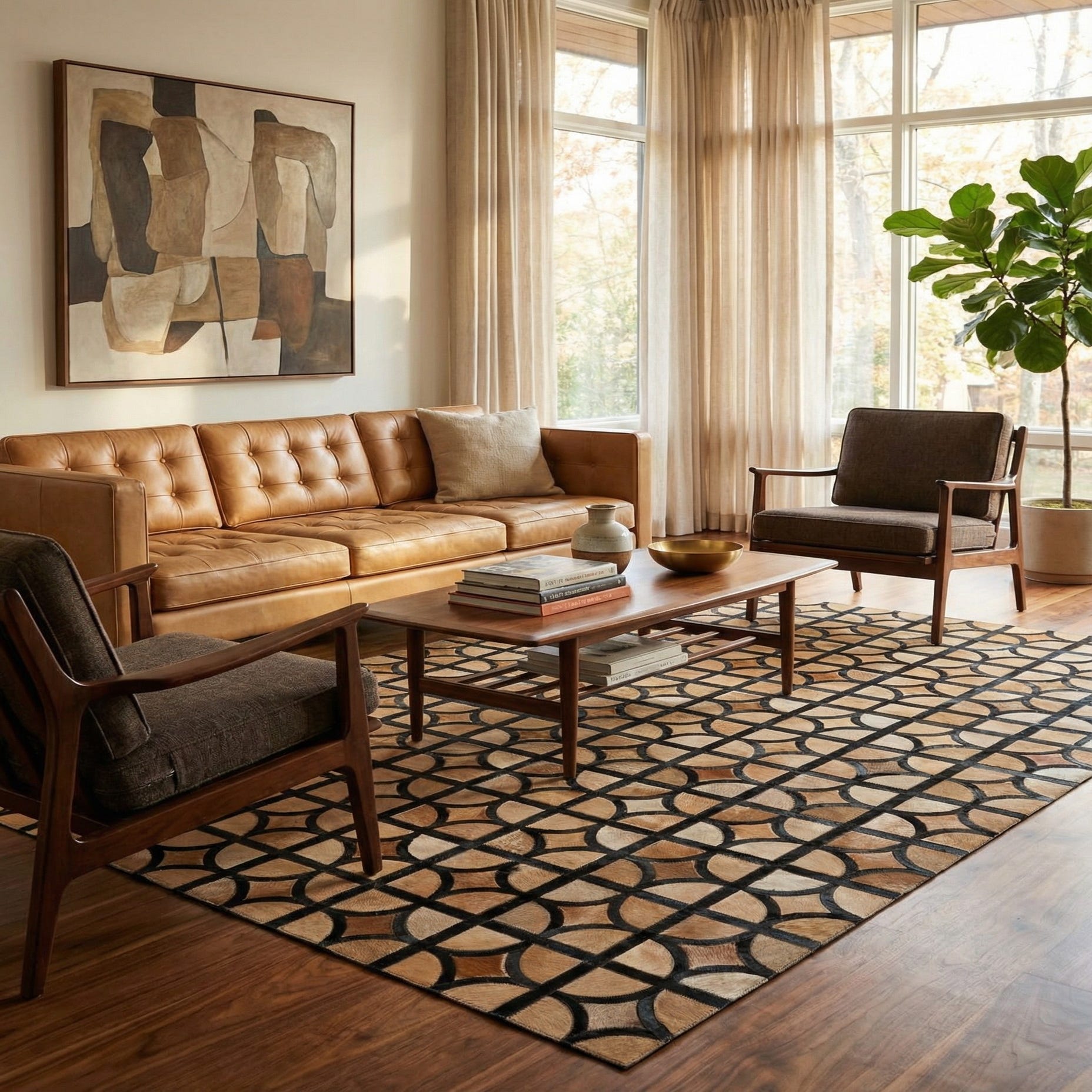 Primary color is Brown. Colors in this rug include: Brown, Beige, Black, Light Brown.