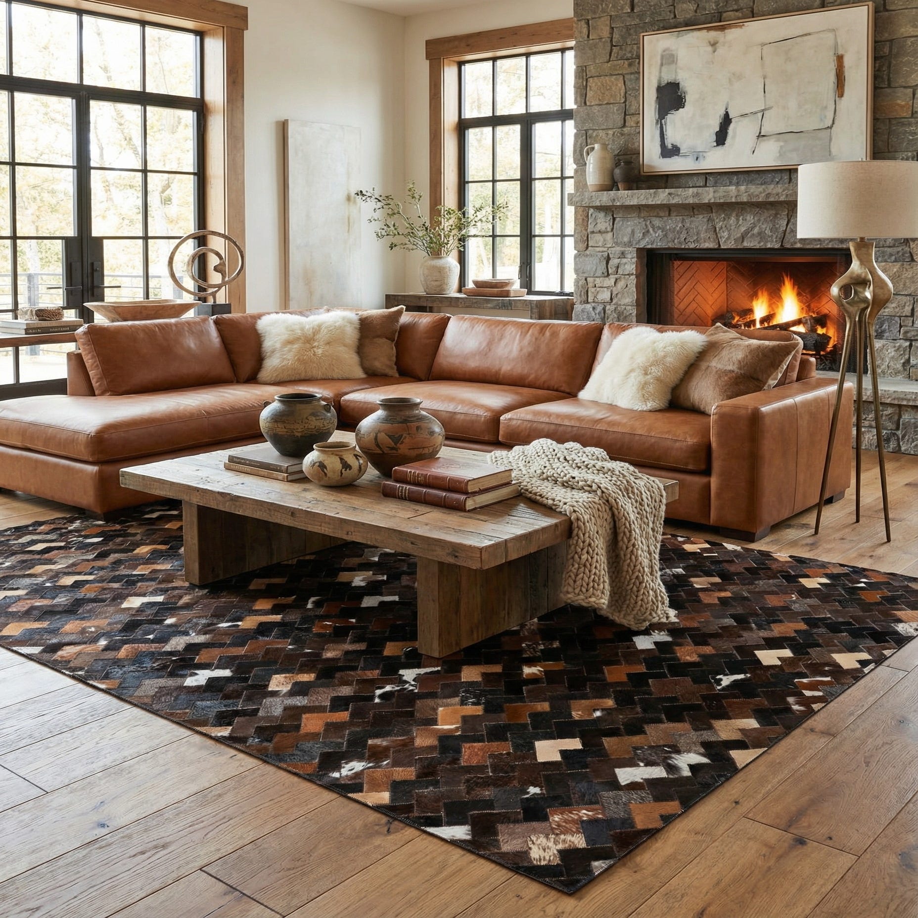 Detail image of 5' x 7' 11 Cowhide Stocks Rug