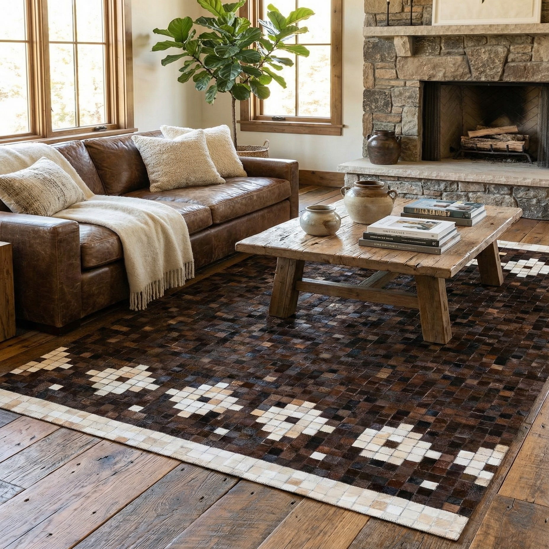 Detail image of 5' 2 x 8' Cowhide Stocks Rug