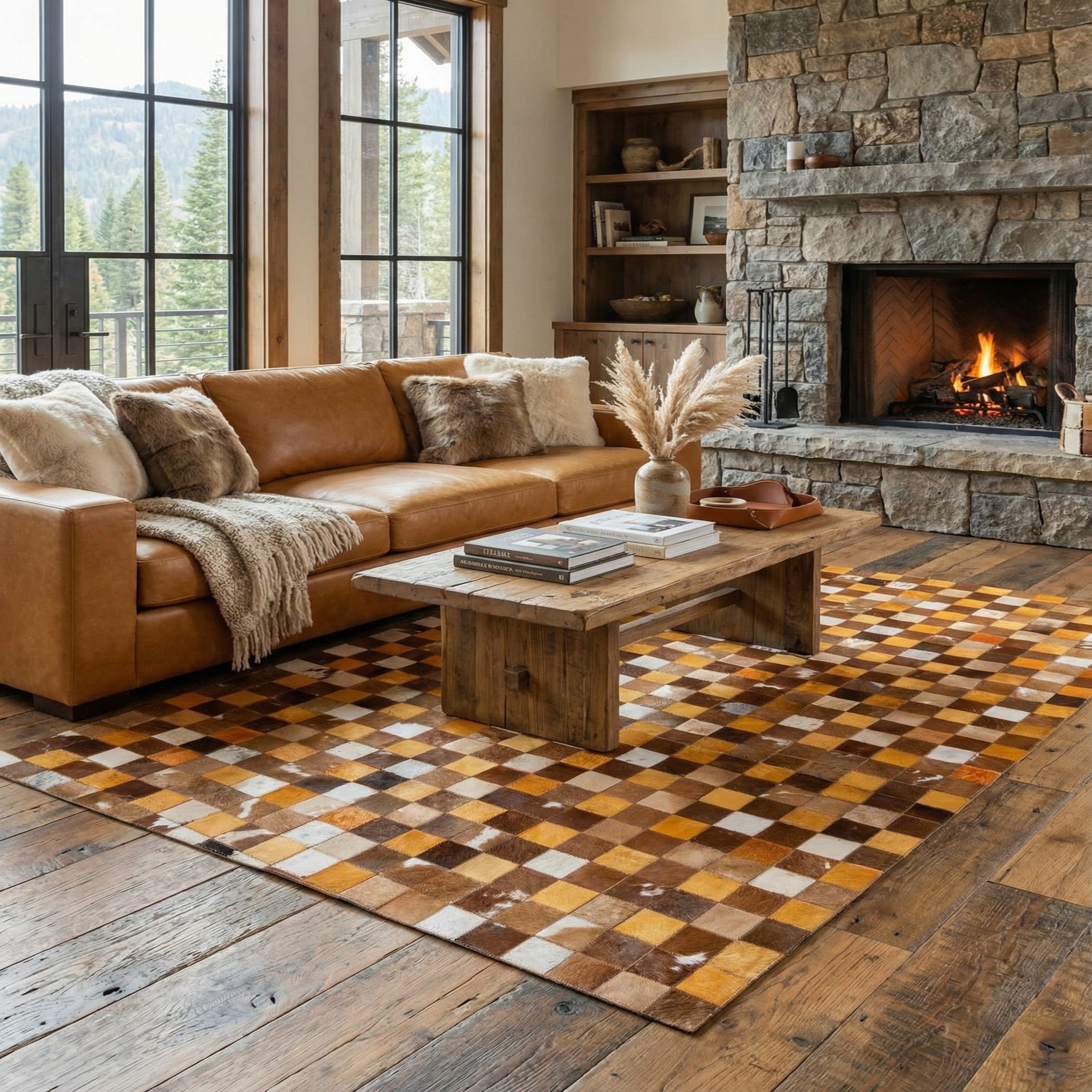 Detail image of 5' x 7' 11 Cowhide Stocks Rug