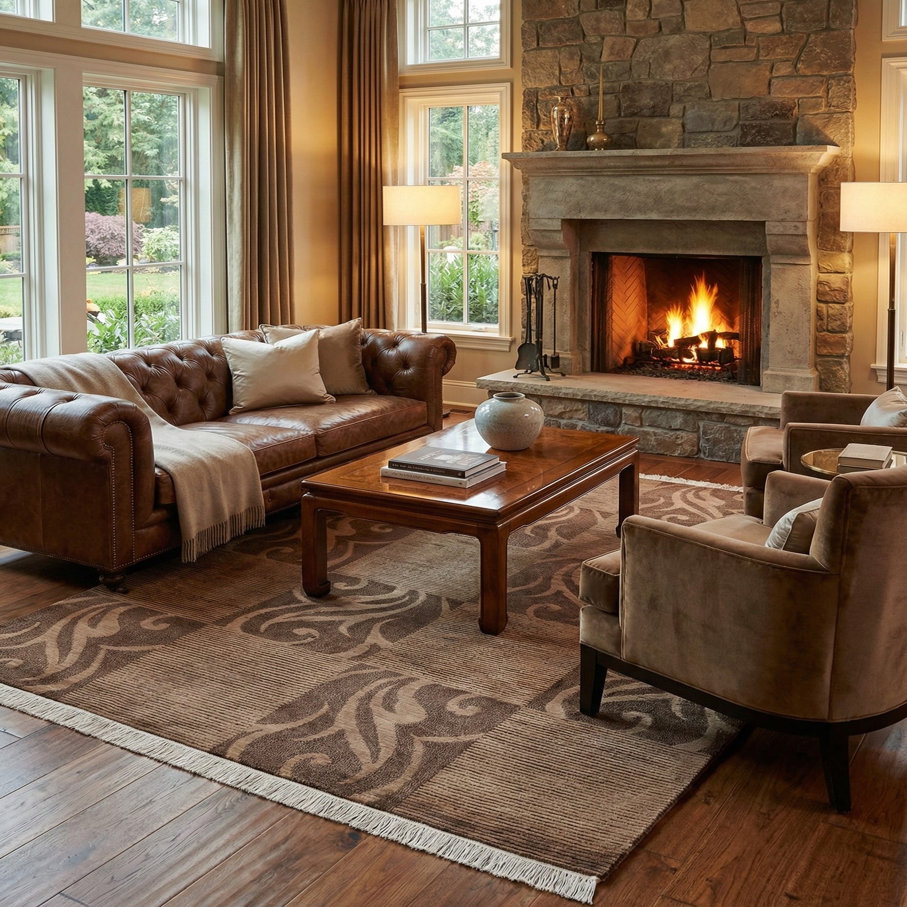 Primary color is Brown. Colors in this rug include: Brown, Light Brown.