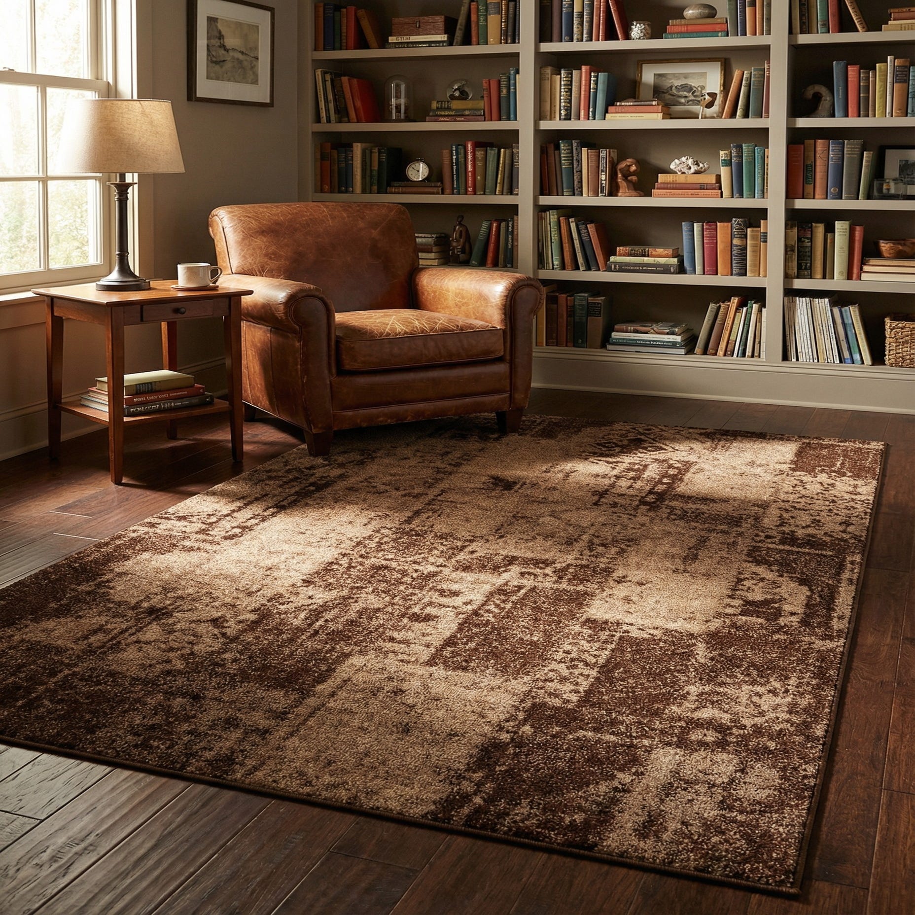Primary color is Brown. Colors in this rug include: Brown, Beige, Light Brown.