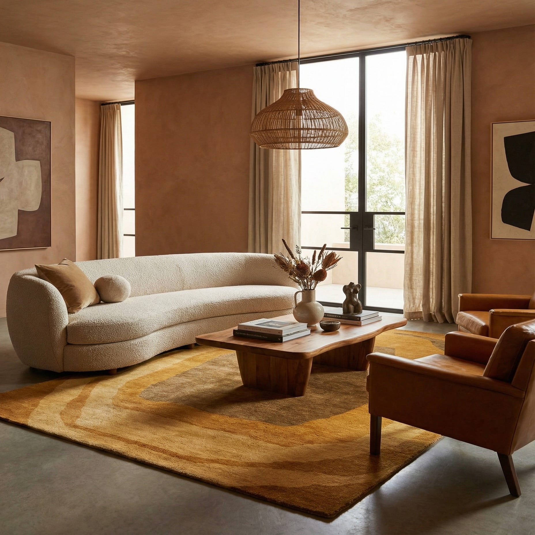 Primary color is Brown. Colors in this rug include: Brown, Brown, Cream, Orange, Beige.