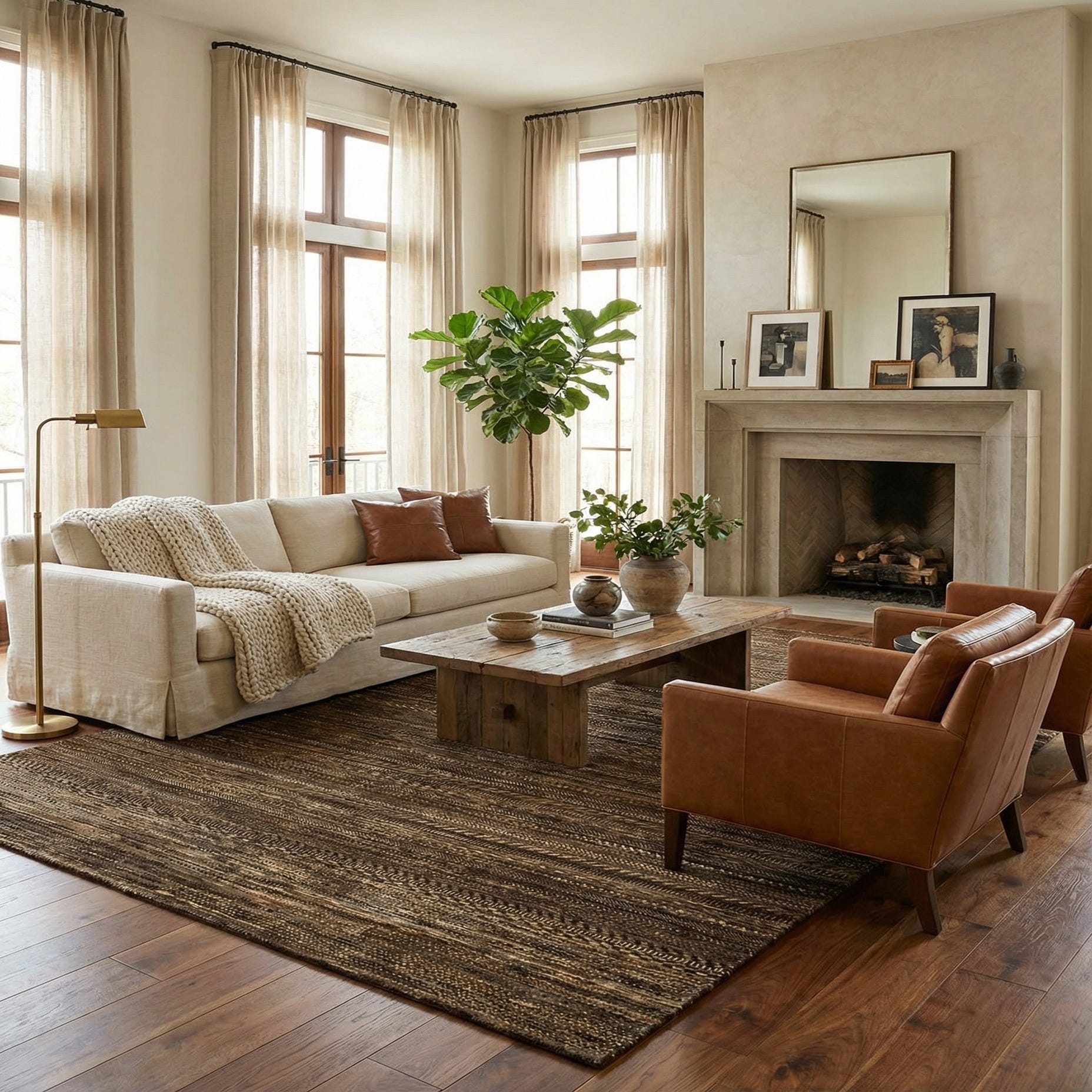 Primary color is Brown. Colors in this rug include: Brown, Brown, Beige, Cream.