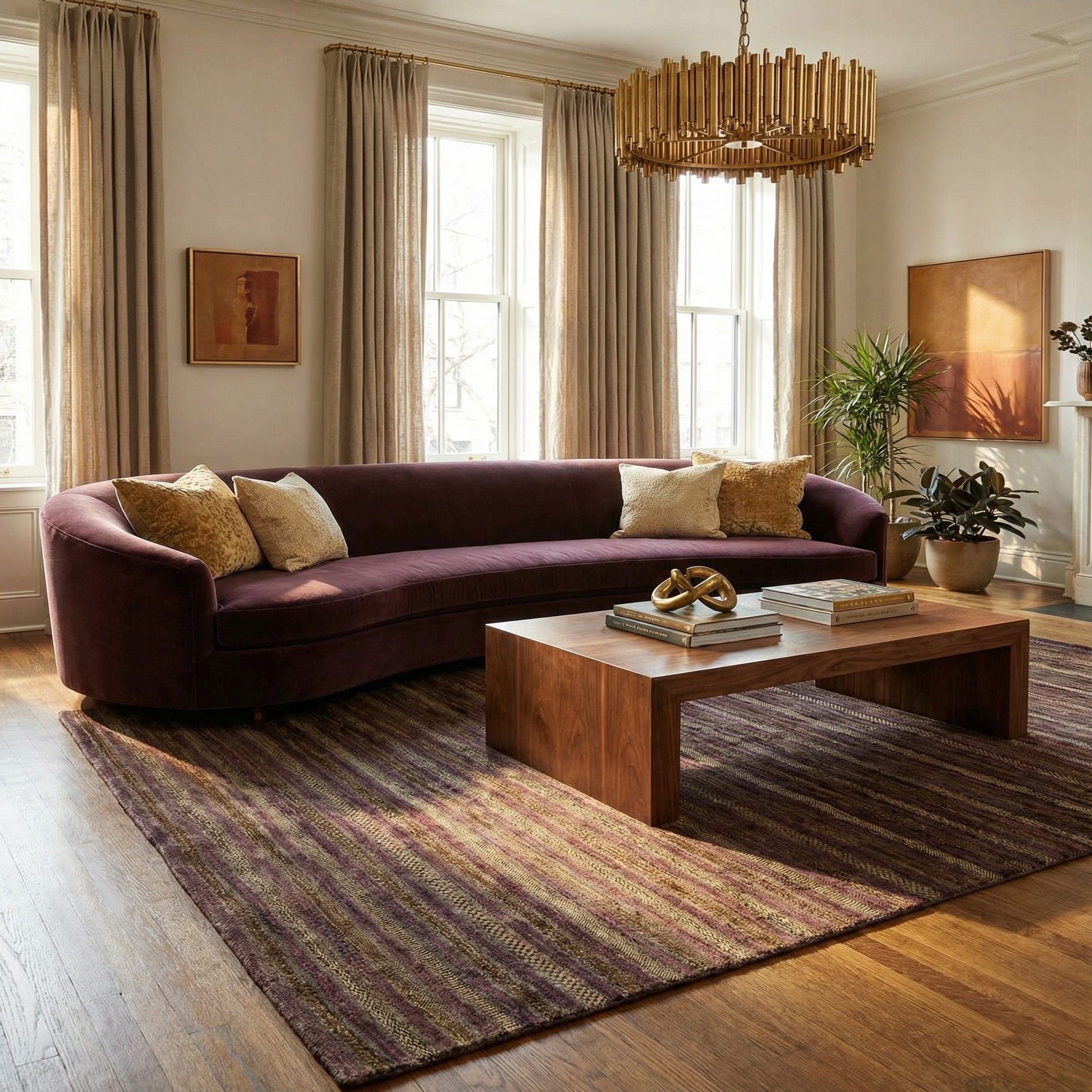 Primary color is Brown. Colors in this rug include: Brown, Brown, Violet, Grey, Beige.