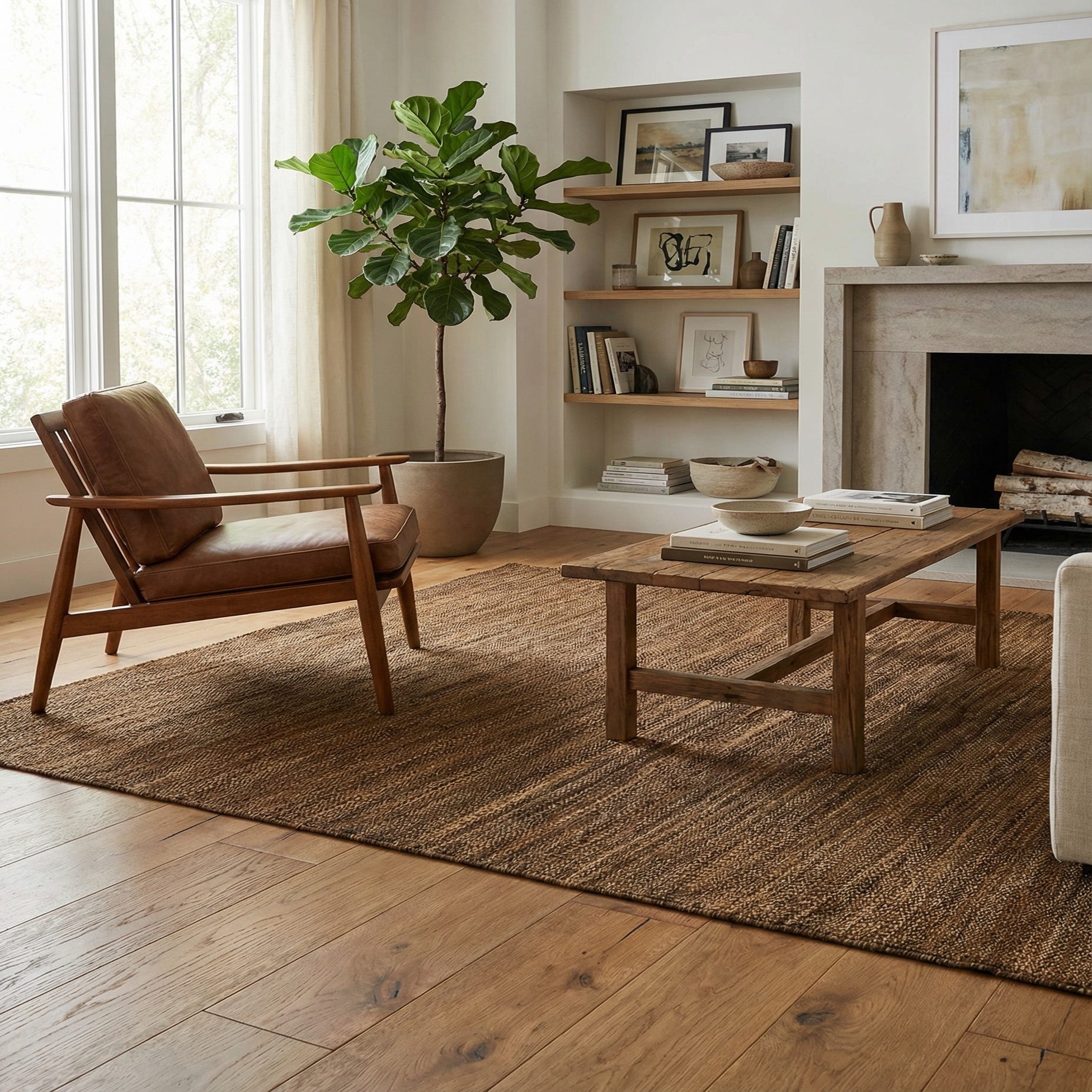 Primary color is Brown. Colors in this rug include: Brown, Ivory.