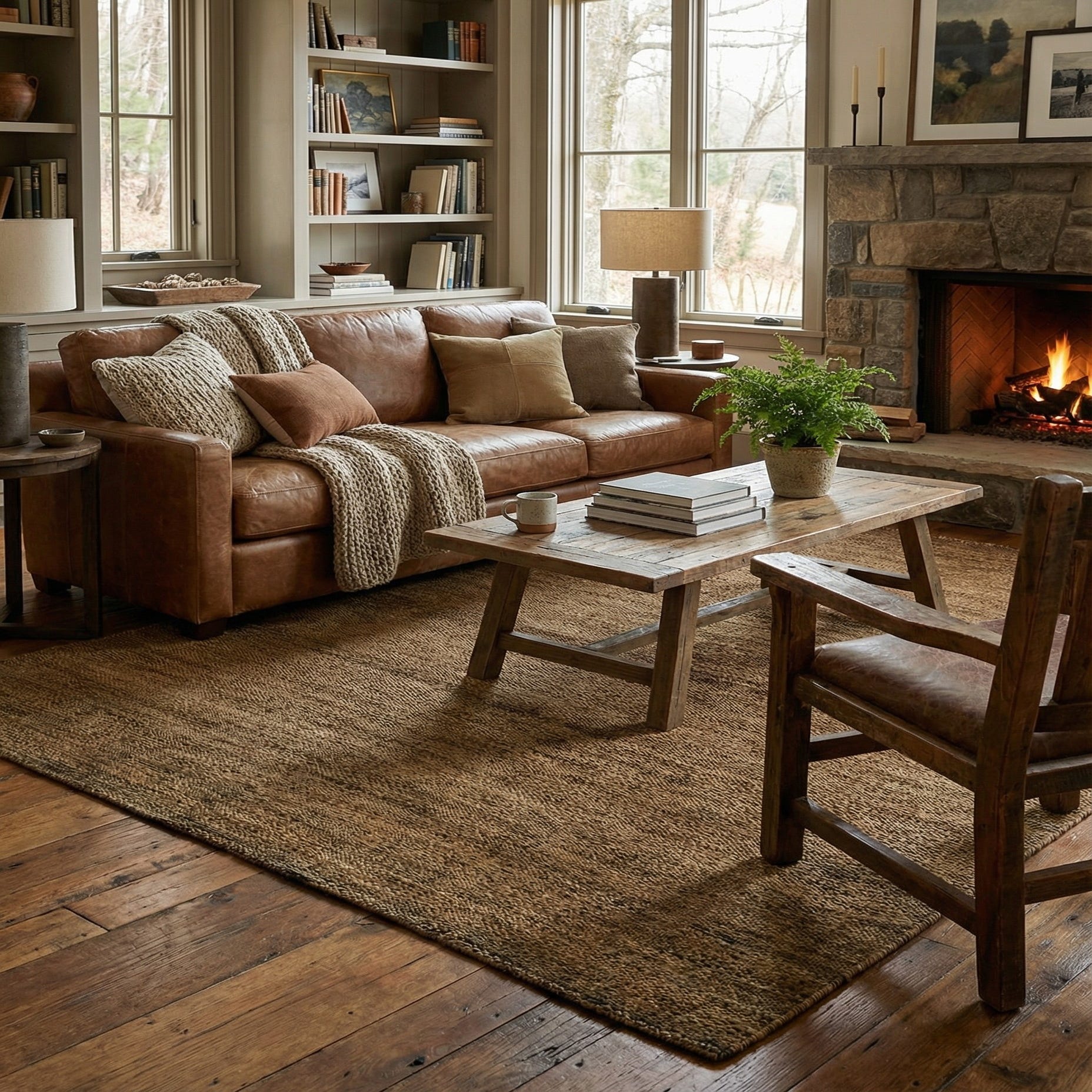 Primary color is Brown. Colors in this rug include: Brown, Ivory.