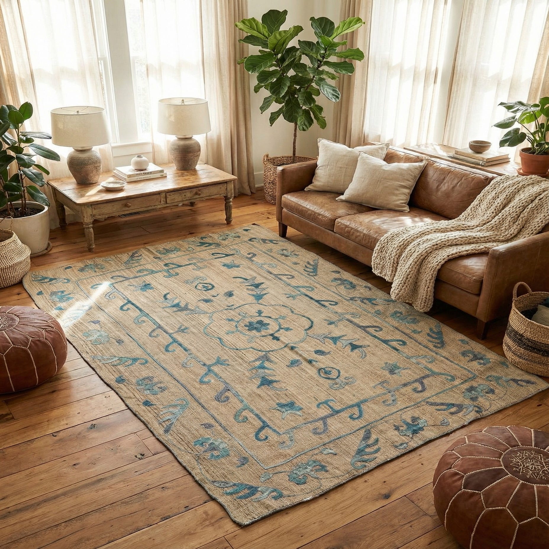 5' 8 x 7' 8 Hand Woven Kilim Suzani Wool Rug
